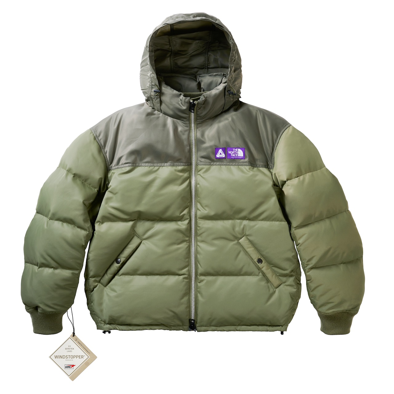 The collection features a WINDSTOPPER field down jacket with a detachable hood in “Asphalt Gray” and “Sage Green,” as well as a WINDSTOPPER field knit jacket and mountain wind parkas with matching pants. The North Face’s logo appears on tees and hoodies, along with Palace’s Tri-Ferg insignia branding. Accessories include waist bags, field hats, gloves, and backpacks in the signature “Asphalt Gray” and “Sage Green” colorways. Each piece fuses Palace’s streetwear DNA with The North Face Purple Label’s retro outdoor aesthetic, creating a perfect blend for wearing year-round and on any terrain.