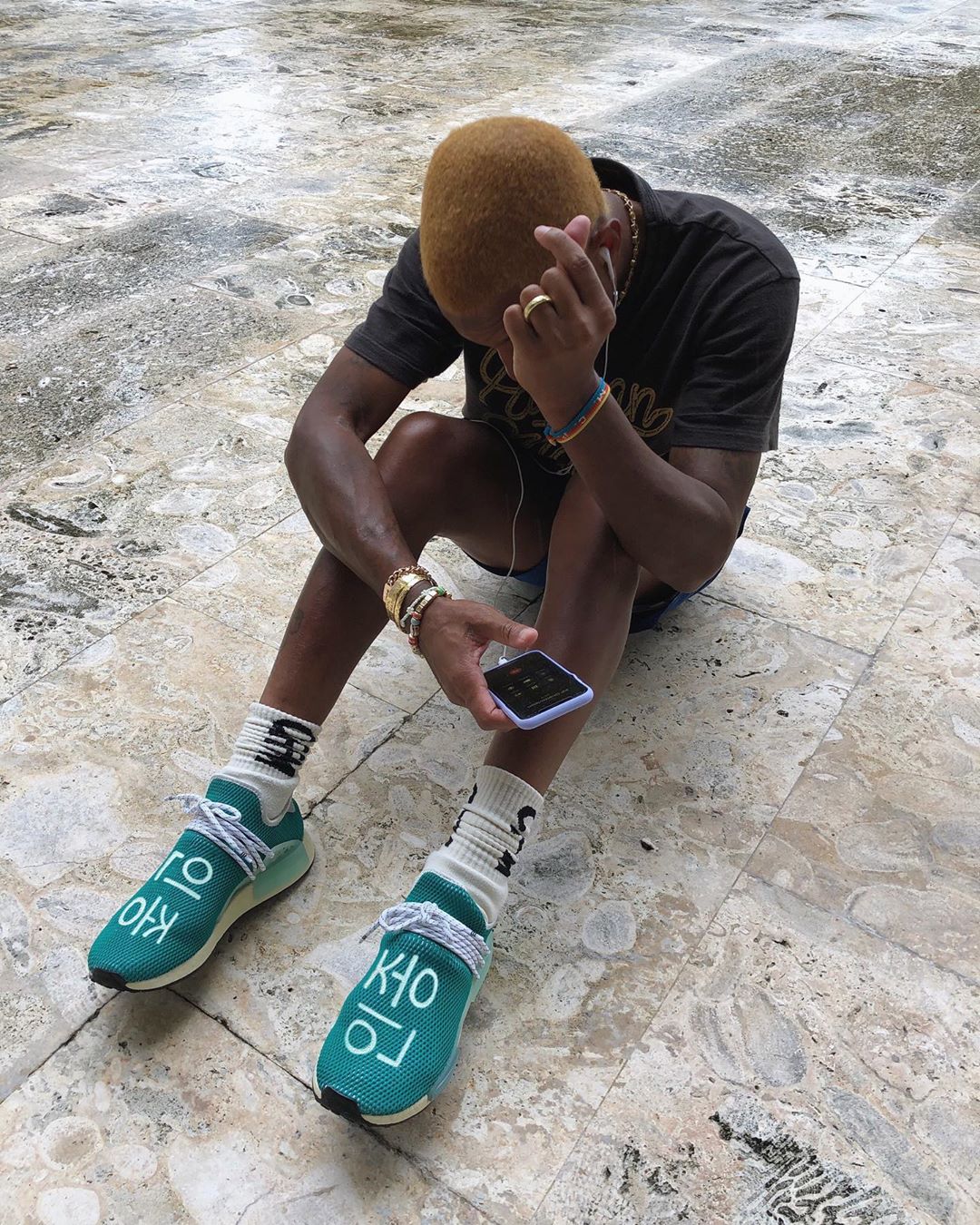 According to adisight, this “Dash Green” NMD Hu will be limited to 7,777 pairs worldwide. Grab an on-feet look courtesy of Pharrell below, as well as the close-up view courtesy of adisight. No release info yet, so make sure to stay tuned to Modern Notoriety for updates.