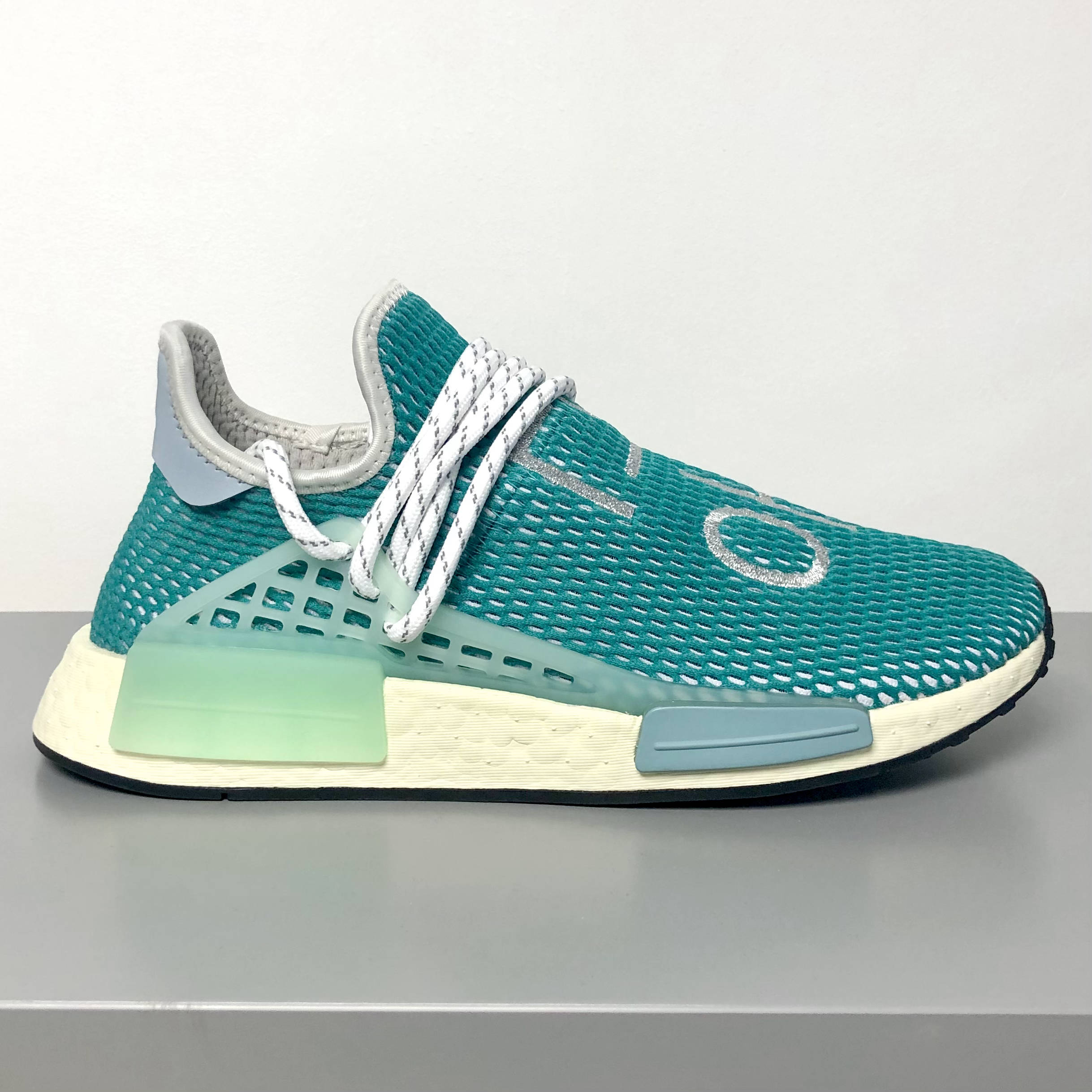 Original Story (10/13/20): The Pharrell x adidas NMD Hu is back in the news, with the recent release of a couple new colorways and the cornucopia of leaks revealing upcoming colorways in every color of the rainbow, and then some. Some of these NMD Hu colorways will be more exclusive than others, and this upcoming “Dash Green” pair is reportedly one of the more exclusive offerings.