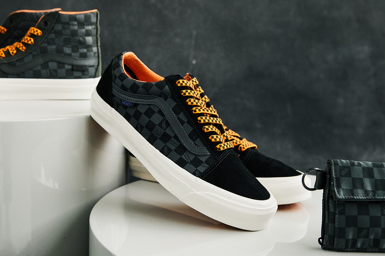 Included in the collection are two OG Old Skool LXs, an OG Classic Slip-On VLT LX, and OG Sk8-Hi Reissue VLT LX. Each silhouette houses a checkerboard and/or floral print, orange hits and removable Sidestripe. The laces and other detailing vary by silhouette but the accompanying items in the collection match the footwear’s overall vibe. Alongside the shoes is a padded briefcase, wallet and luggage tag, infused with Vans’ Southern California relaxed style and PORTER’s sophisticated versatility.