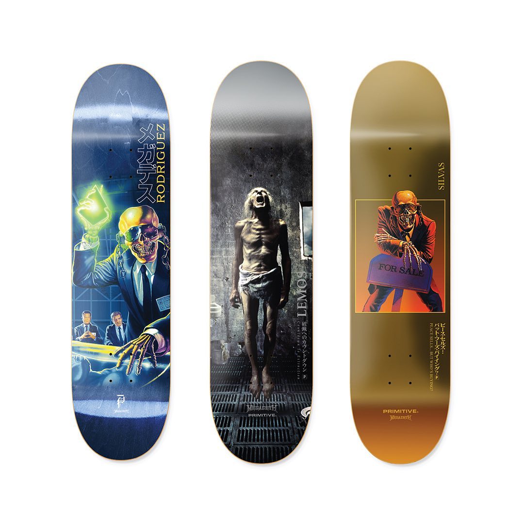 P-Rod’s Primitive Skateboarding casts a wide net when it comes to its collaborations. Whether it’s animes like Sailor Moon and Naruto or classic movies like Terminator 2, Primitive has something for everyone. It’s latest drop is for the metalheads, a collection in collaboration with Megadeth.