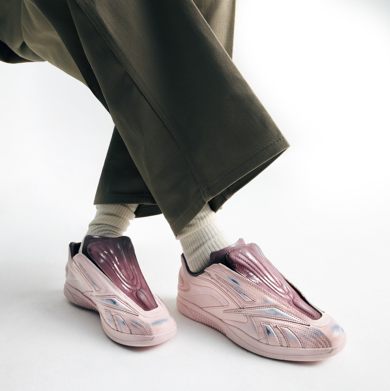 Footwear designer Evan Belforti applied a range of distinct finishes across the silhouettes, each tailored to highlight different elements of the design. A “Buff Metallic” treatment fills the Hammer Pro’s quilted lines, while on the Premier Road Ultra, the finish highlights its layered paneling. Other finishes include “Suede Gloss,” which merges matte and desaturated suede tones with a contrasting glossy synthetic, and “Hyper,” which introduces bold, unconventional color combinations through vibrant hues.