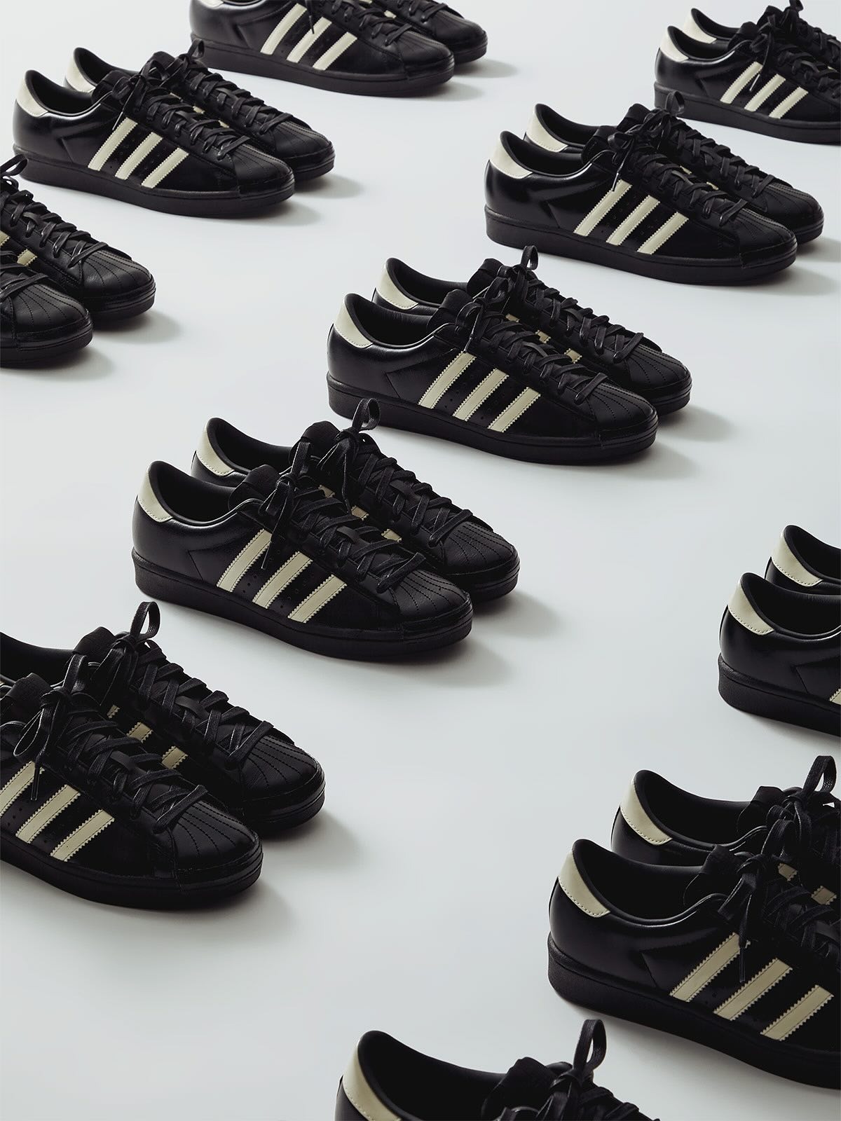 On Black Friday 2008, while still working at David Z., Ronnie Fieg launched his first collaboration with adidas, a murdered out “Black Tie” Superstar designed to be dressed up with a suit or dressed down with a casual fit. 17 years and many adidas partnerships later, Fieg is now bringing the concept back with the “Black Tie 2.0.”