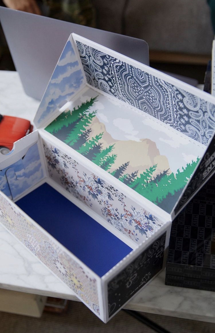 Based on the teaser images posted on Fieg’s Instagram story, the Kith x Vans Vault collection will consist of multiple colorways of the Classic Slip-On LX. A couple of the colorways come covered in paisley patterns with a color palette consisting of muted blue and green hues. Other colorways feature mountainous and tree-covered landscapes. These patterns and landscapes can also be found on the packaging for the shoes.
