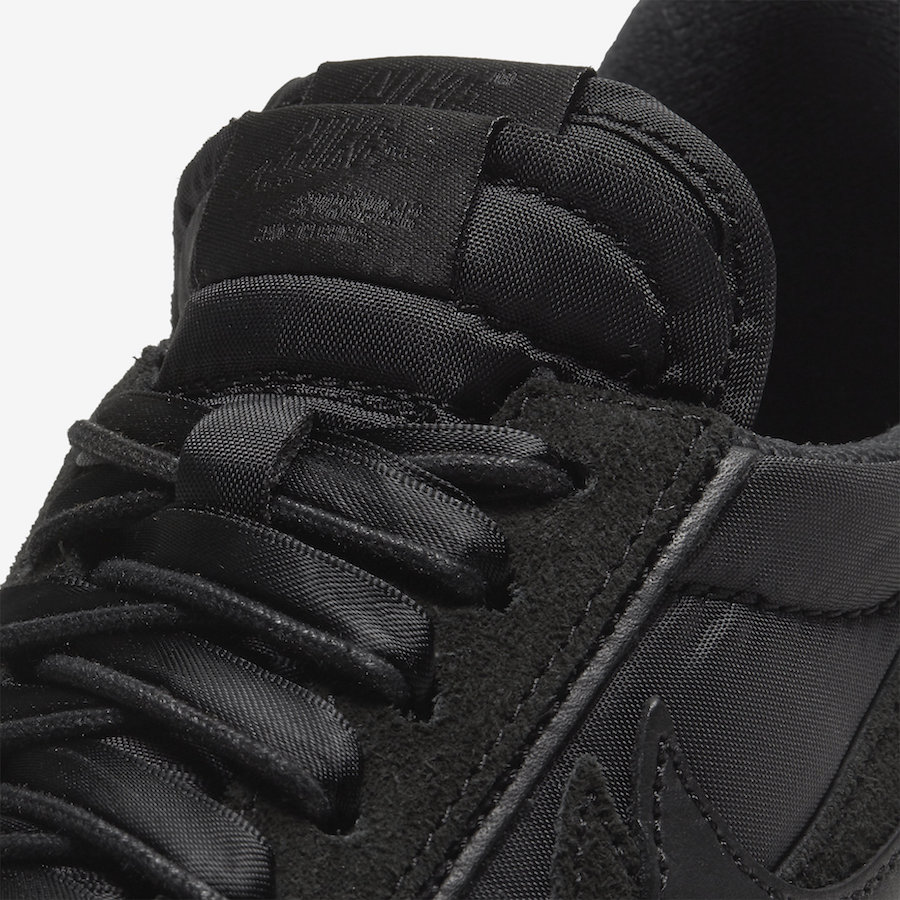 One of those releases will come equipped with a fully black upper. Like previous versions, the theme of doubles continues, as it features a double Swoosh, double tongues, double laces, and a double-stacked midsole. One thing that’s different is the construction, as it features a mixed-material upper with panels of leather, suede, and water-resistant nylon.