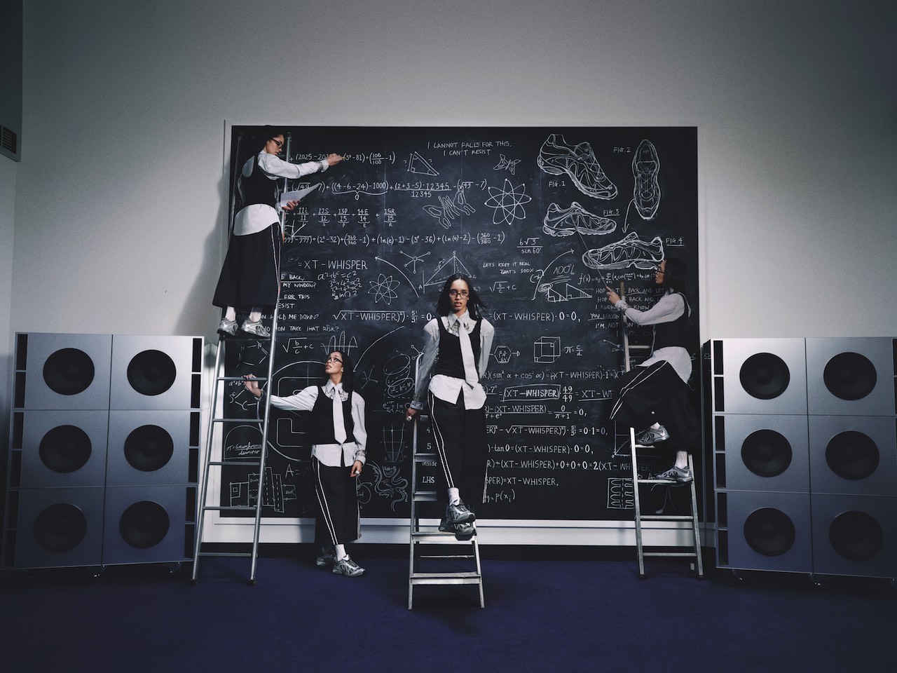 A new campaign for the shoe, set inside the “Whisper University” halls, stars Belgian-based Moroccan artist and musician Dina Ayada. The multifaceted singer finds herself in two distinct spaces: a waiting room—symbolizing the tension of ideas yet to be realized—and a lecture room, where she turns those ideas into sound and movement, representing her artistic evolution and journey from law school dropout to rising pop star.