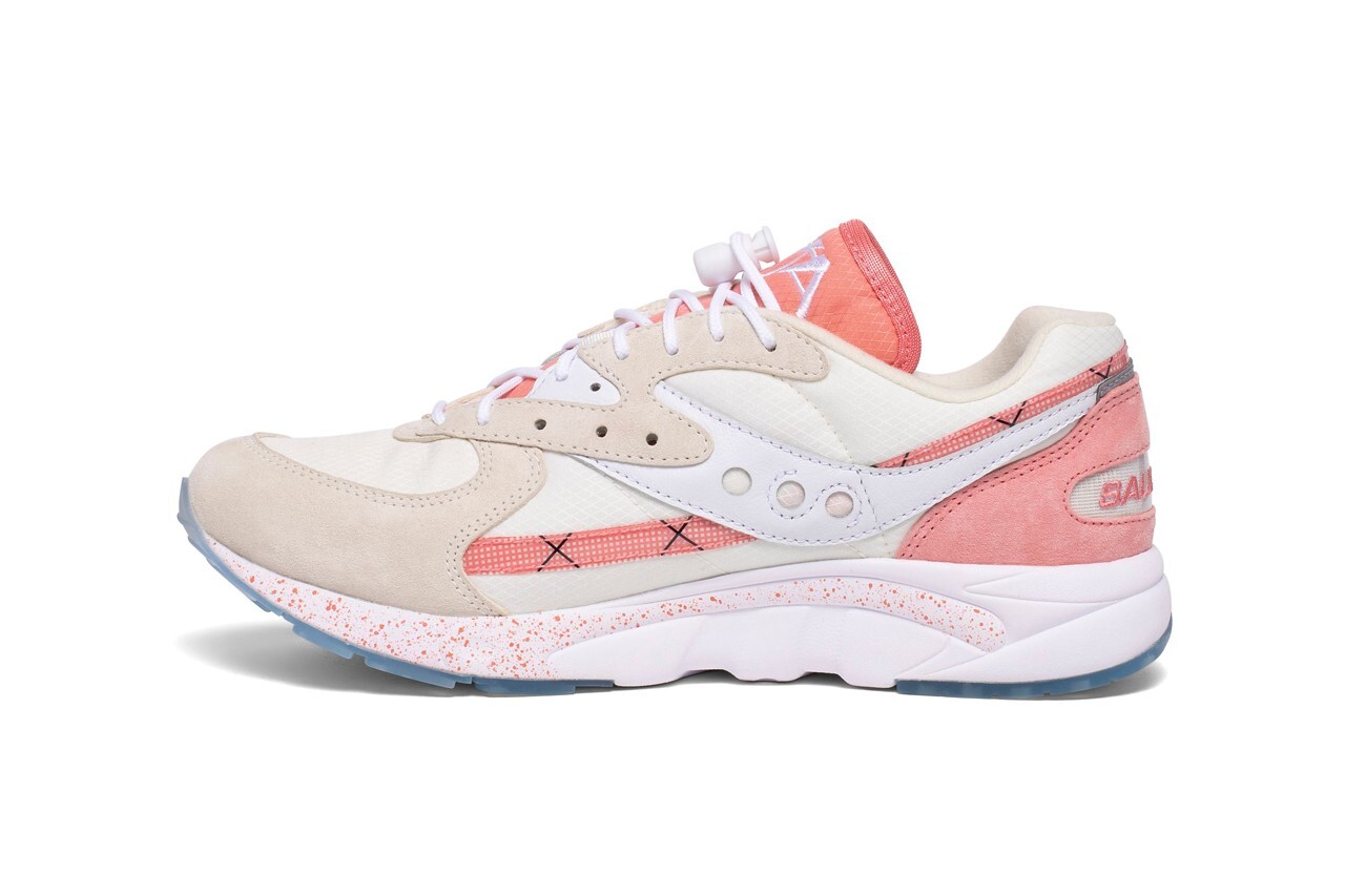 Saucony continues a strong start to 2020 following its collaboration with Raised By Wolves with the release of the “Peaches and Cream” Aya pack.