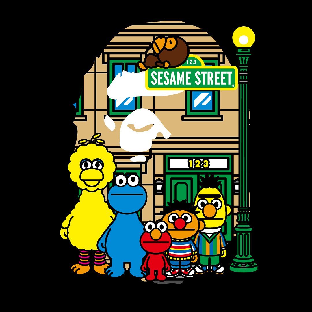 A BATHING APE has connected with the beloved children’s television show Sesame Street on an apparel collection featuring some of the show’s iconic characters. Sesame Street first broadcasted in 1969 and has been aired in over 150 countries worldwide.