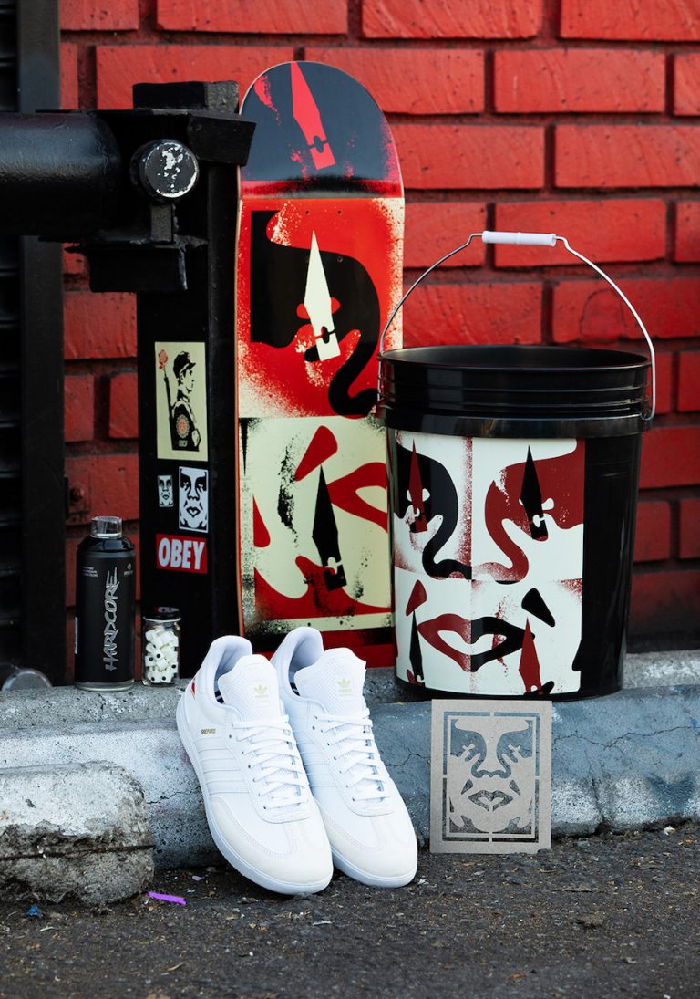 Shepard Fairey teams up with adidas Skateboarding for a special Samba ADV for the Beyond The Streets 2018 exhibition.