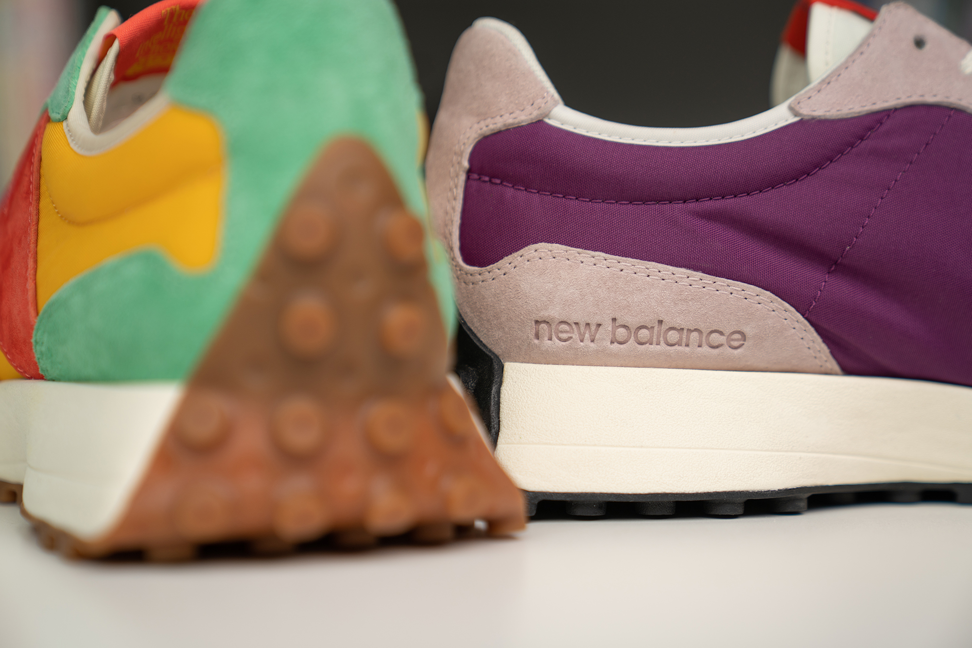 Almost entirely inspired by the 70s, the New Balance 327 is spiced up with suede and nylon that puts a fierce emphasis on nostalgia. With a scheme drawn straight from the archived colorways, the shoes keep in tune with the vintage feel. One pair is comes in mint green, yellow and red with a rubber outsole while the other is shown in red, purple and tan with a black outsole.