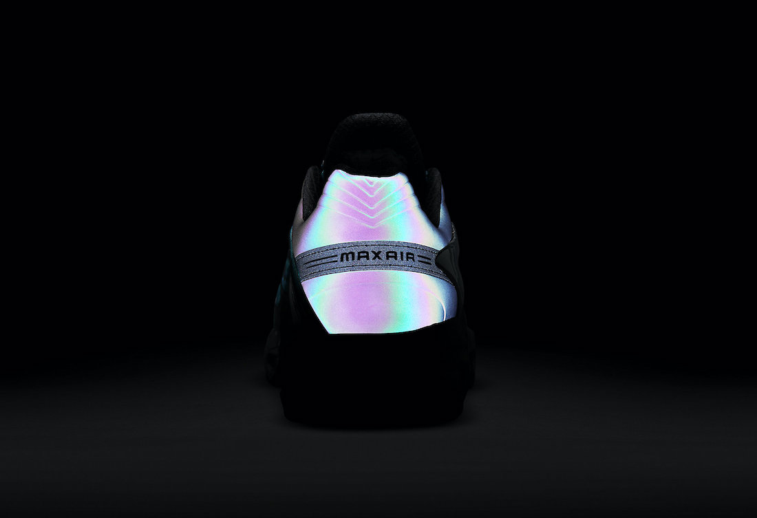 The culmination of various design cues within the swirl of bright blue, black, and subtle purple hues creates an exciting and eclectic pair overall. Choices made in regard to detail, such as placing a digitally printed pattern on the upper’s base and applying bold detailing throughout, can be held accountable for the vibrant and experimental nature of the classic silhouette. A black TPU exoskeleton wraps around the forefoot and midfoot, while texture and dimension are added to the pair with a black rubber toe cap. The entire heel has been covered by an iridescent purple-to-blue gradient material that also subtly appears on the tongue and collar. The pair finish with chrome midfoot Swooshes, a drop-down heel clip into the black EVA foam midsole, as well as heel and forefoot Air Max units.