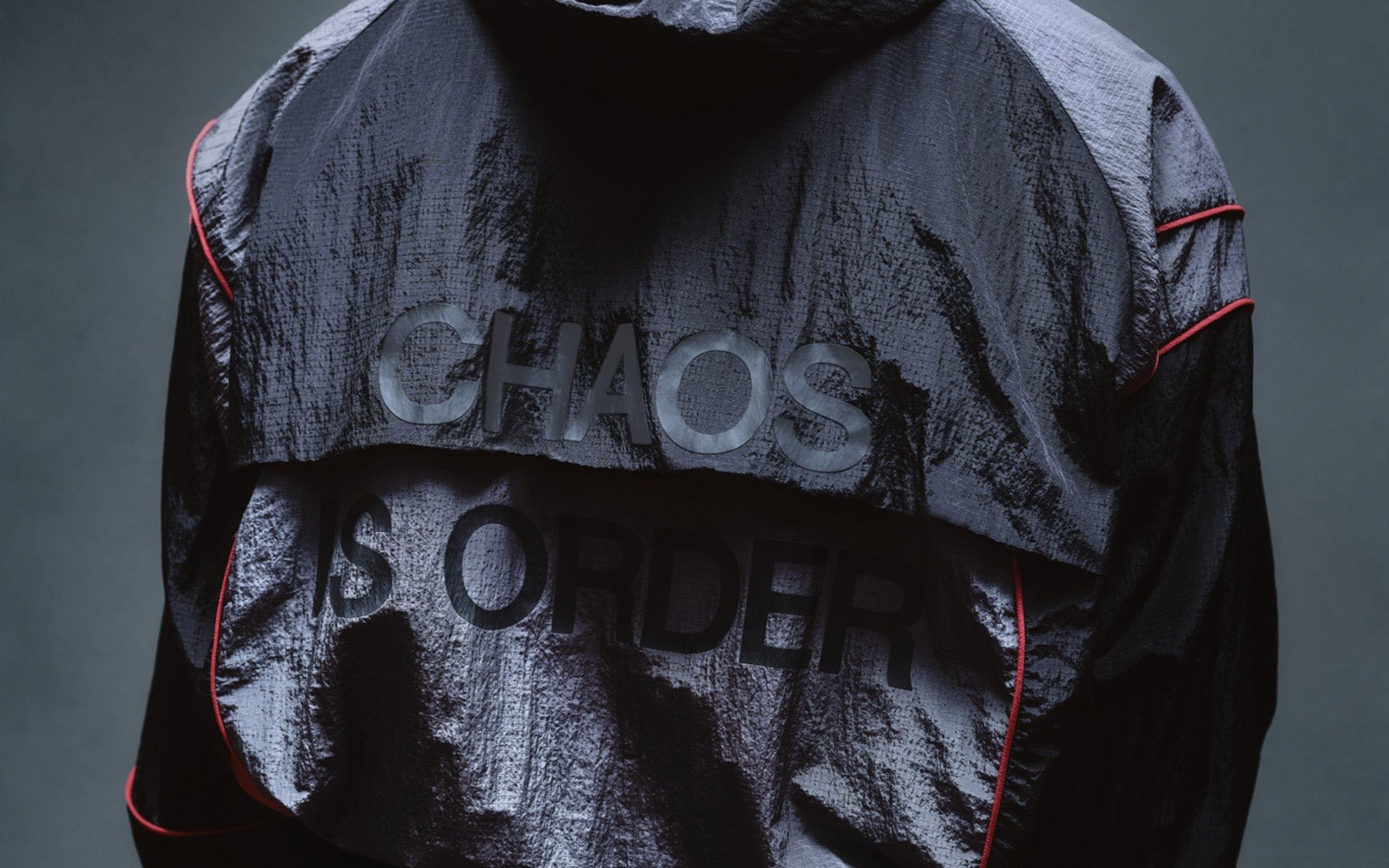 Also releasing are the track jacket and pants that the team wore pre-match, offered in a dark grey and black color scheme with red accents. Slam Jam’s upside down A logo and slogan “Chaos is Order” can be found across the collection.