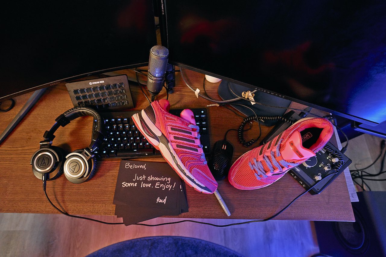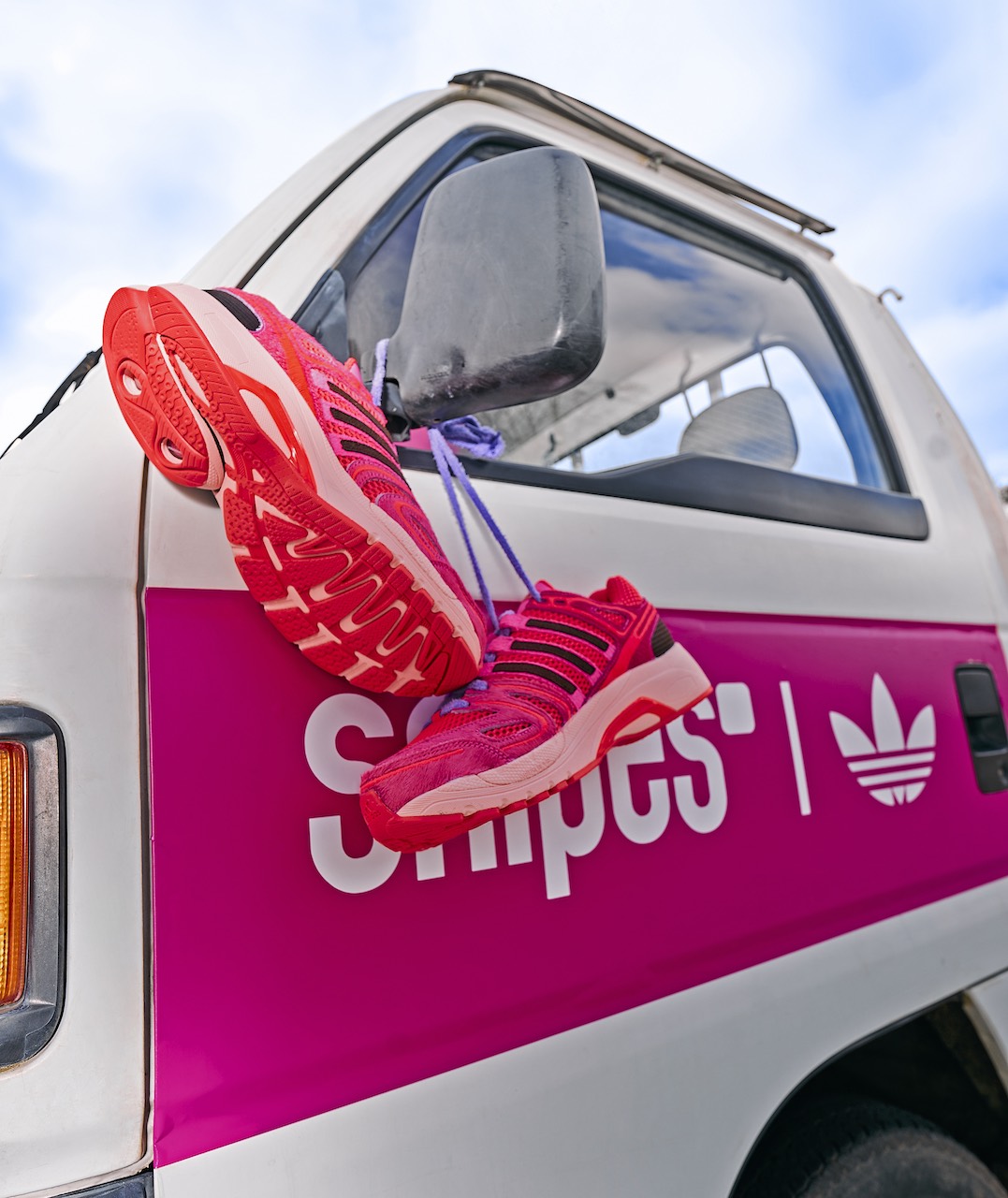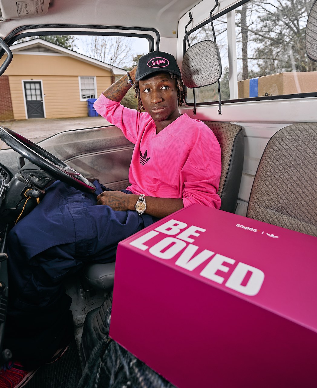 Led by Twitch streamer Raud, the “Love Delivered” campaign casts the creator as a modern-day messenger, promoting self-care while pushing against outdated norms. In the campaign, Raud drives a kei truck through the neighborhood in a SNIPES delivery uniform, laced up in the “Be Loved” Adistars. The collaborative runner features vibrant red, pink, and purple hues—colors rarely seen in menswear—underscoring themes of individuality and confidence.