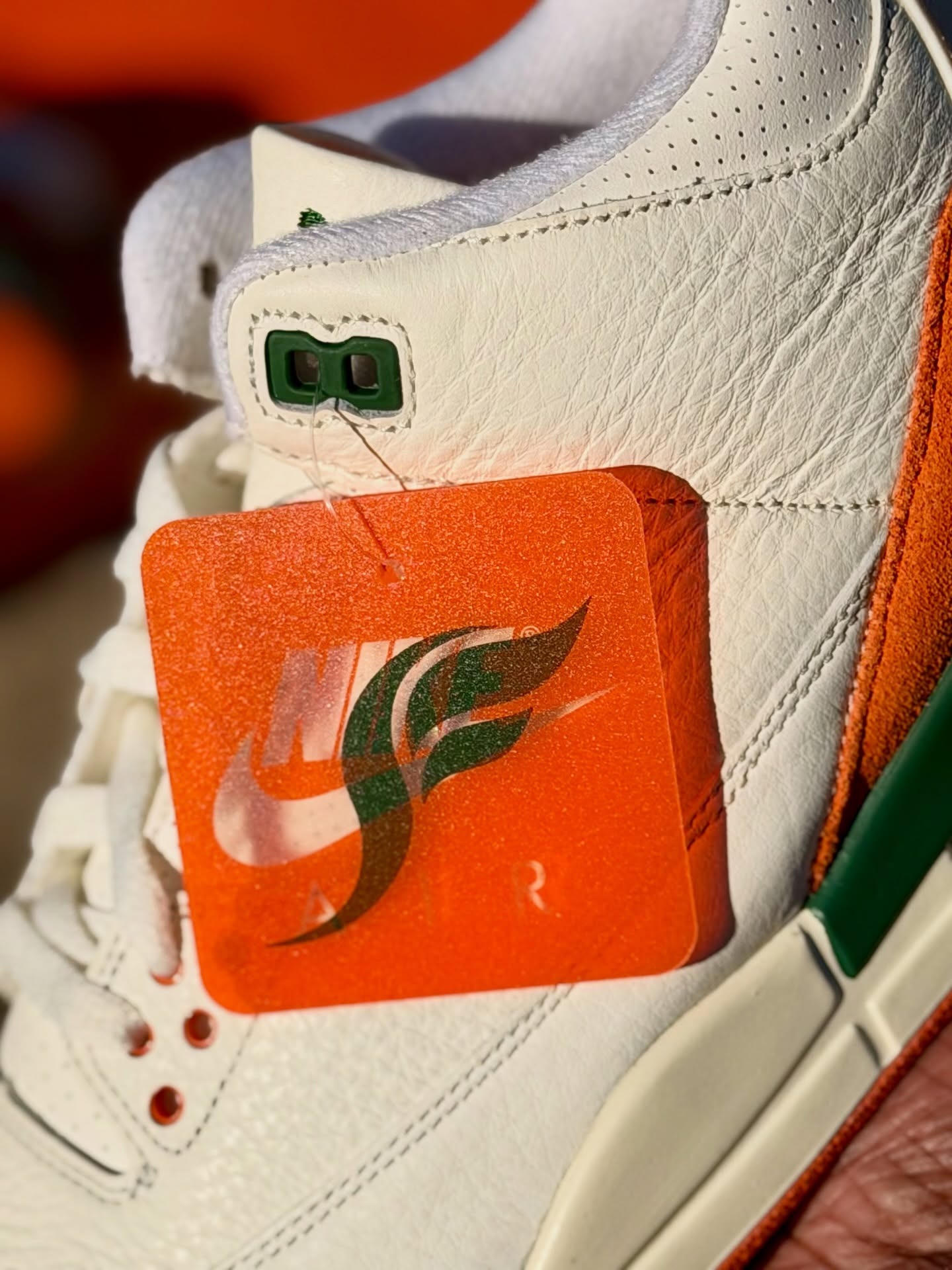 This marks the second time SoleFly has used University of Miami colors on an Air Jordan collab, matching their highly-coveted Air Jordan 1 from 2018. This is also the retailer’s second Air Jordan 3 project, following the “Lotto” colorway released in 2014.