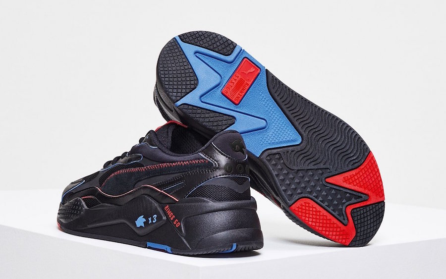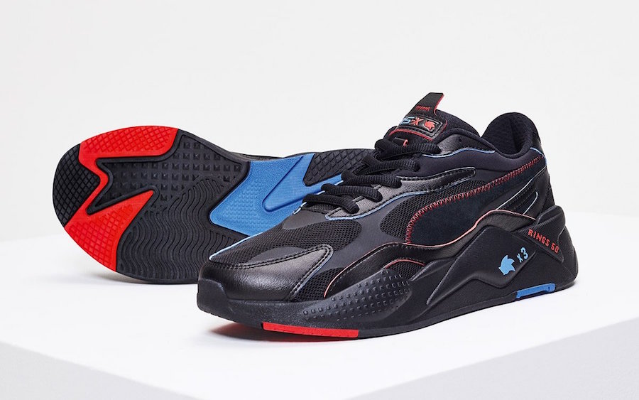 PUMA released a couple of Sonic The Hedgehog themed sneakers last year, both in the RS-0 silhouette, but this year’s collection includes the new RS-X3 silhouette. The colorway is reminiscent of the cover art for the 1994 Sega Genesis game “Sonic & Knuckles,” dressed in black with hits of red and blue.