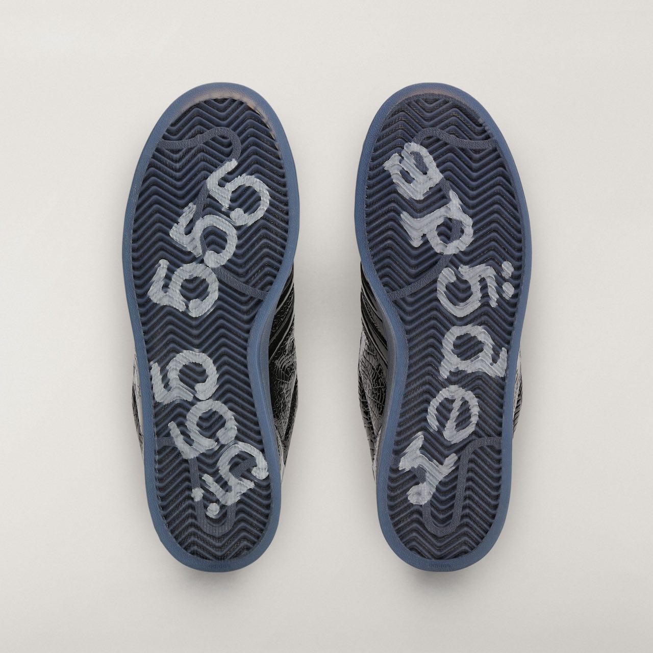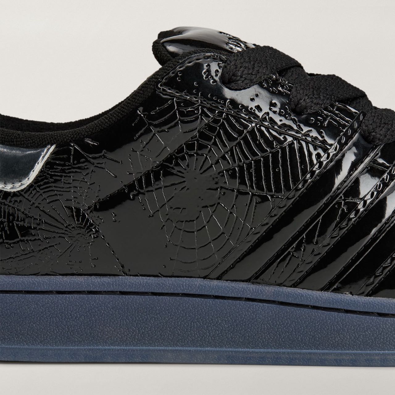 Similar to the debut colorway in reptilian green, these new Sp5der Superstars are wrapped in glossy leather with spider web debossing across the upper. The black pair comes with metallic silver accents, while the red comes with hits of black on the Three Stripes and heel panel. Both are equipped with padded tongues featuring Sp5der branding on the visible side and “555 555” embroidery on the hidden inner side. Additional Sp5der branding is found on the heel of the midsoles and underfoot on the translucent outsoles.