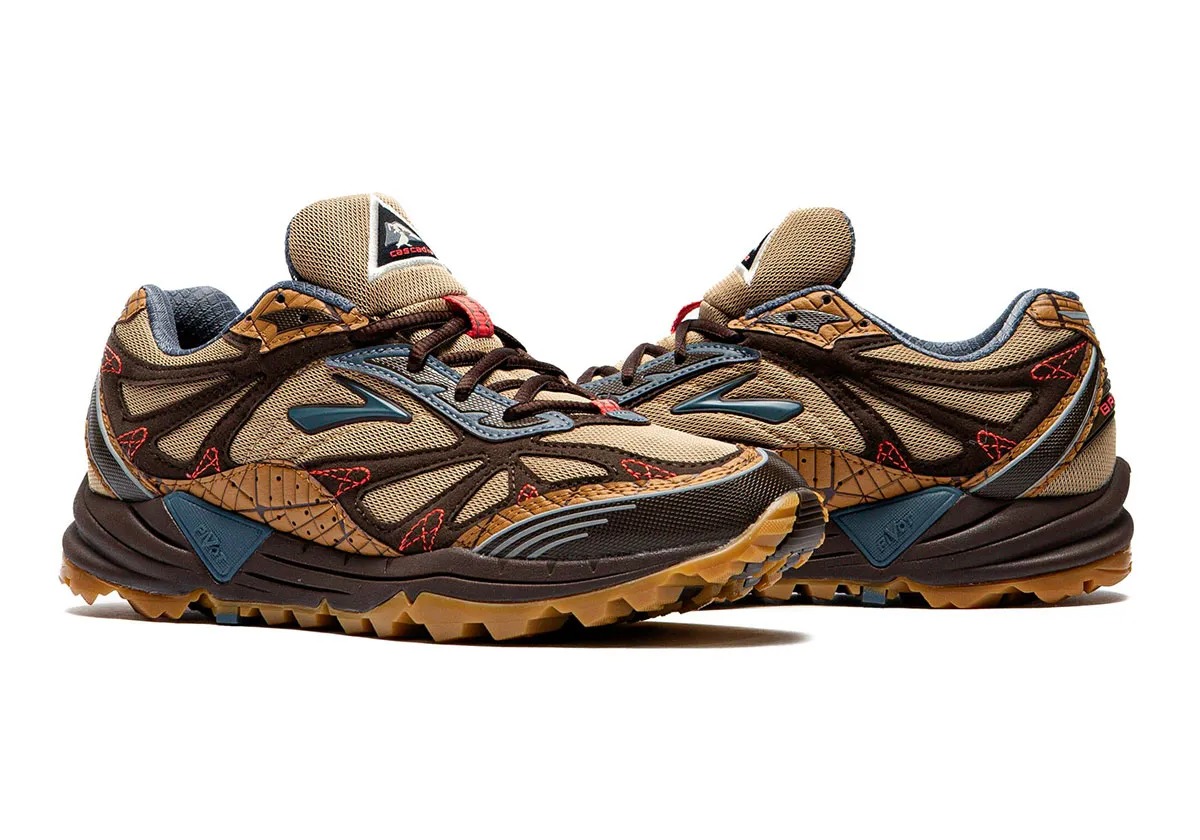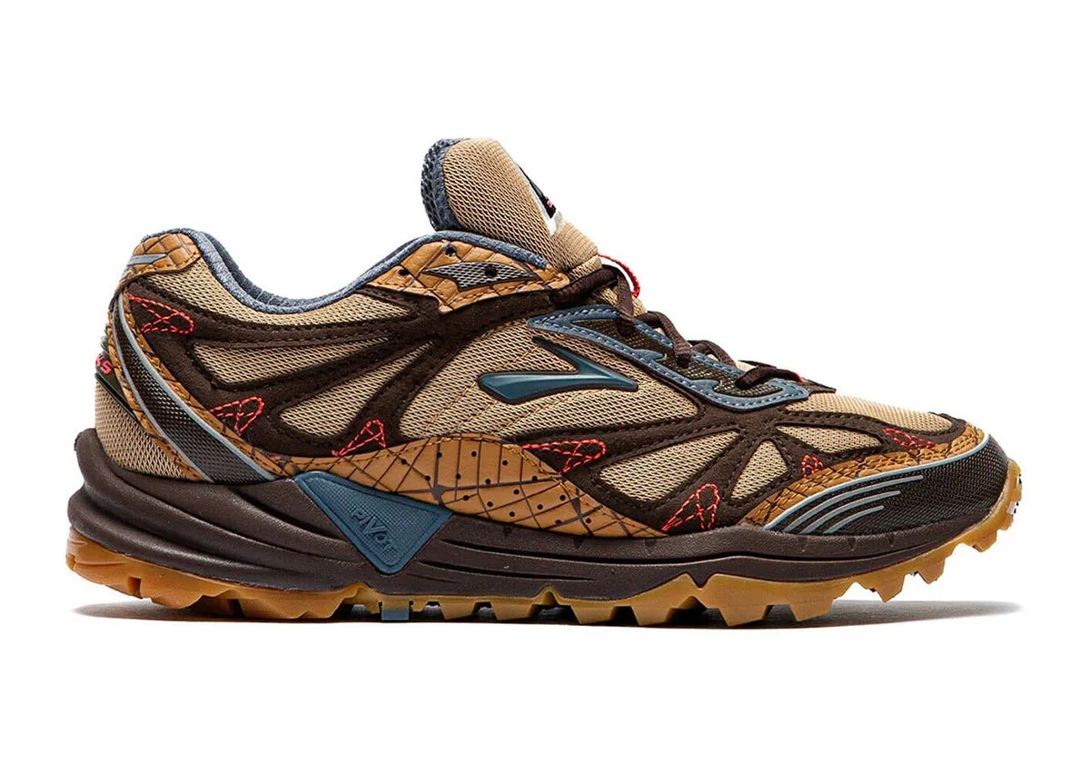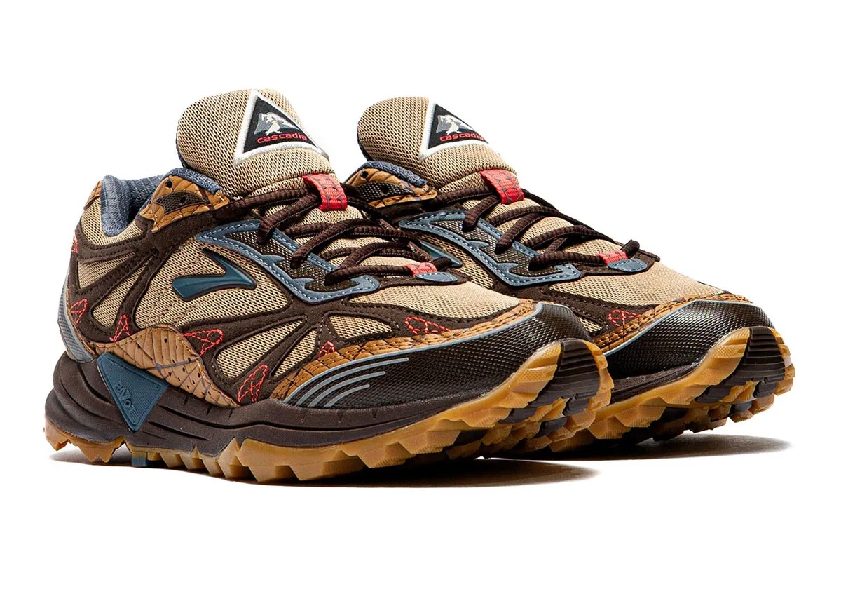 Reaching into Brooks’ archive, the Cascadia 1 was the brand’s first-ever trail running shoe, debuting in 2004. The Ghost Trail is a modern silhouette built with today’s cushioning and ride expectations in mind. Both arrive in the same color palette centered around earth tones such as brown, tan, and crimson red.