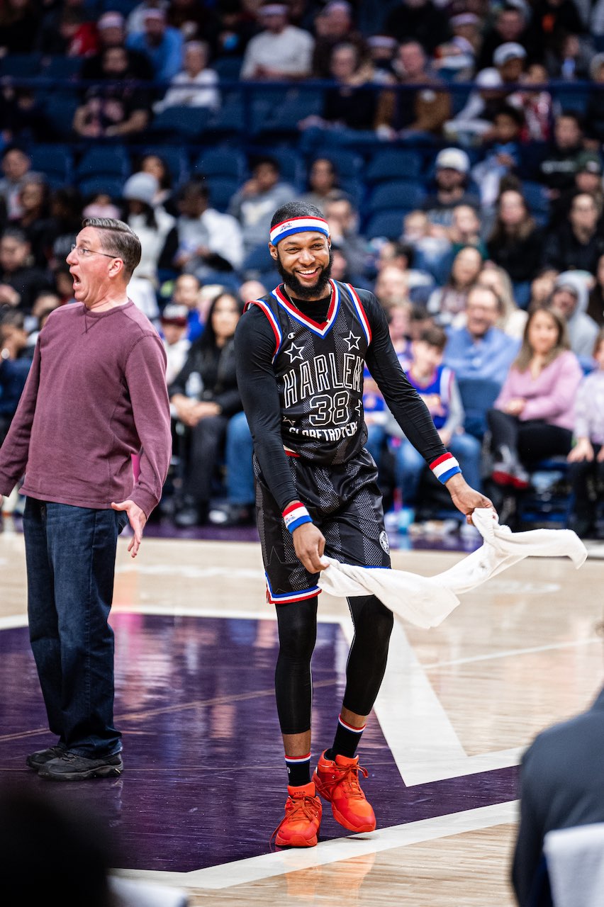 Harlem Globetrotters wearing the Stria Sport 107 series on court: