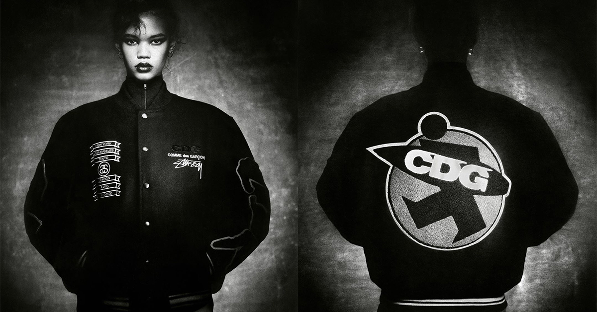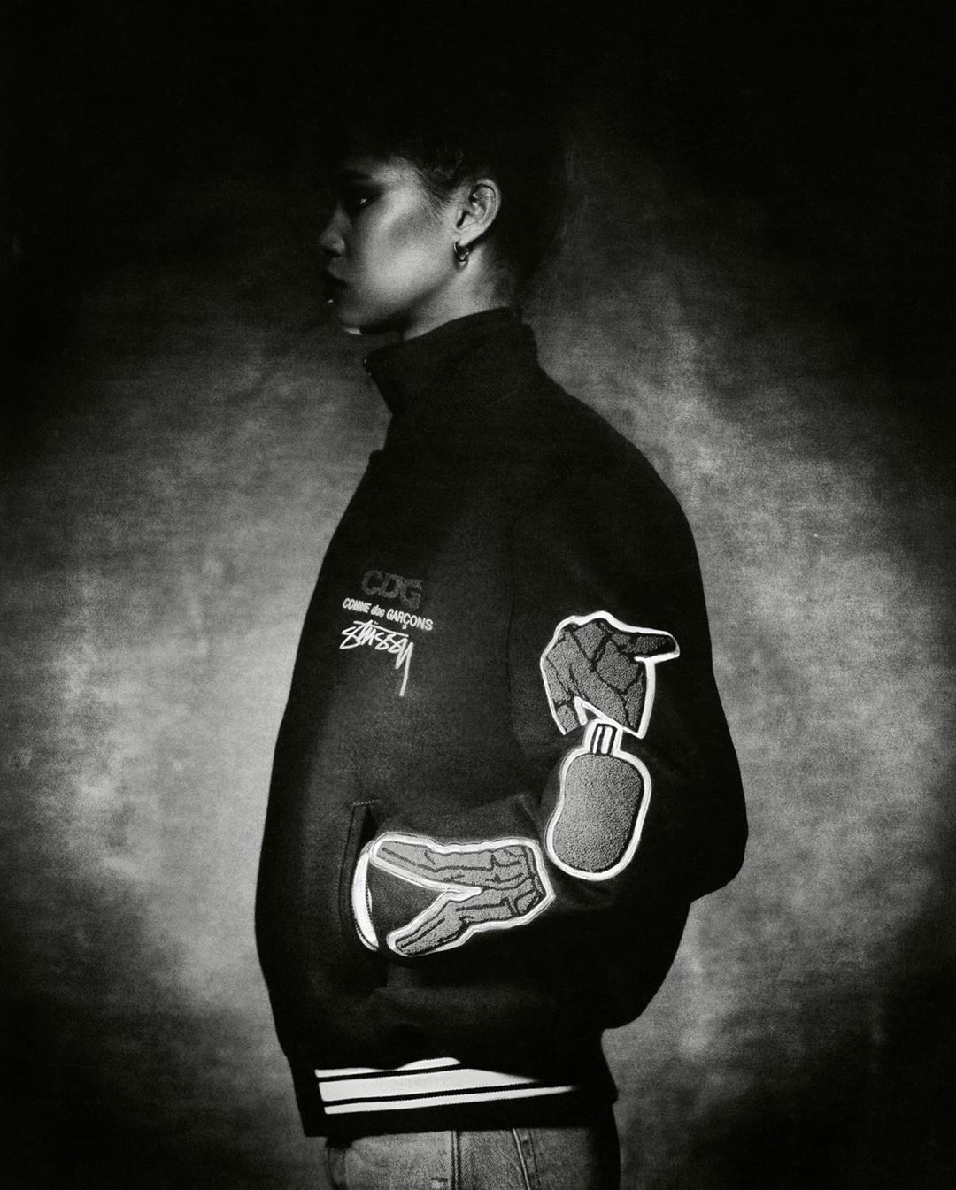 Japanese fashion label COMME des GARÇONS will be releasing new items this week, including a melton wool varsity jacket made in collaboration with Stüssy in celebration of the OG streetwear brand’s 40th anniversary.