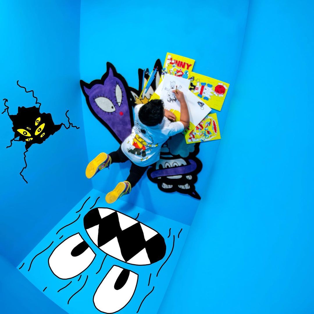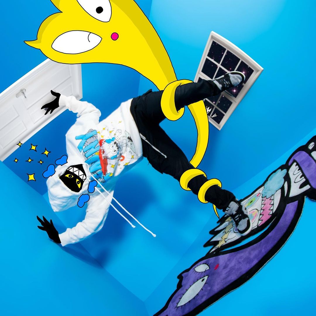 Sukamii has become well-known for its graphic tees and animated plushies, bringing that expertise to the collaboration with Lenny. Hoodies and tees are offered in black and white with colorful graphics that combine imagery of both brands. Other teased pieces include custom character rugs, plushes, and a large inflatable chair.