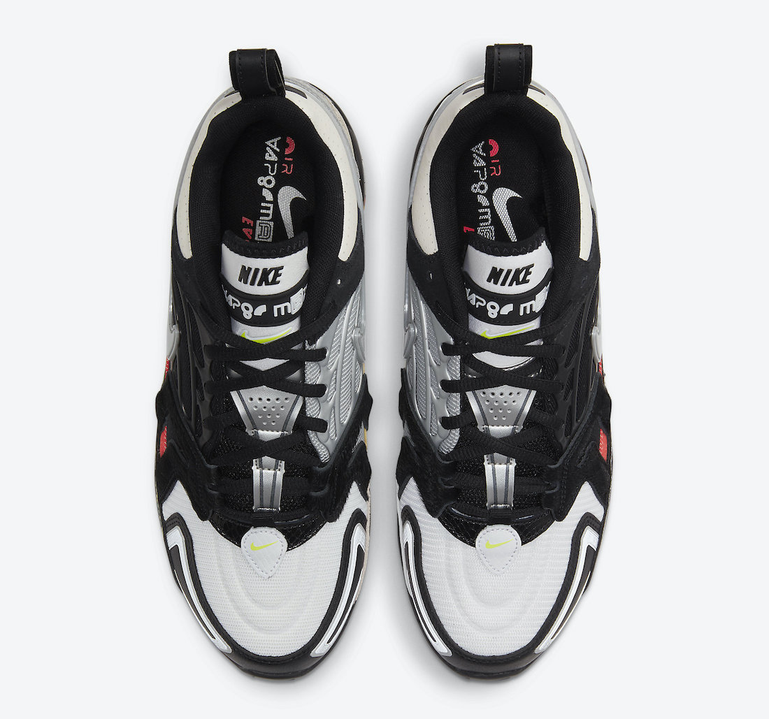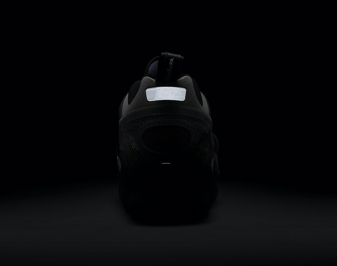 While the Vapormax Evo model itself is a celebration of Air Max past and future, fusing together elements of classic models like the Air Max 90, Air Max 93 and the Air Max Plus (among others), the “Collector’s Closet” colorway takes things to another level, incorporating design elements from several iconic Air Max Day releases. The mismatched mudguards on the left shoe references 2014’s “Moon Landing” Air Max 90 and the coveted “Warhawk” colorway, while the panels on the right shoe reference the atmos “Tiger Camo” Air Max 1 and Supreme “Snakeskin” Air Max 98. Safari print covers the heel overlays, while the midsole is decorated with recognizable branding from the Air Max 95 and Air Max Plus.