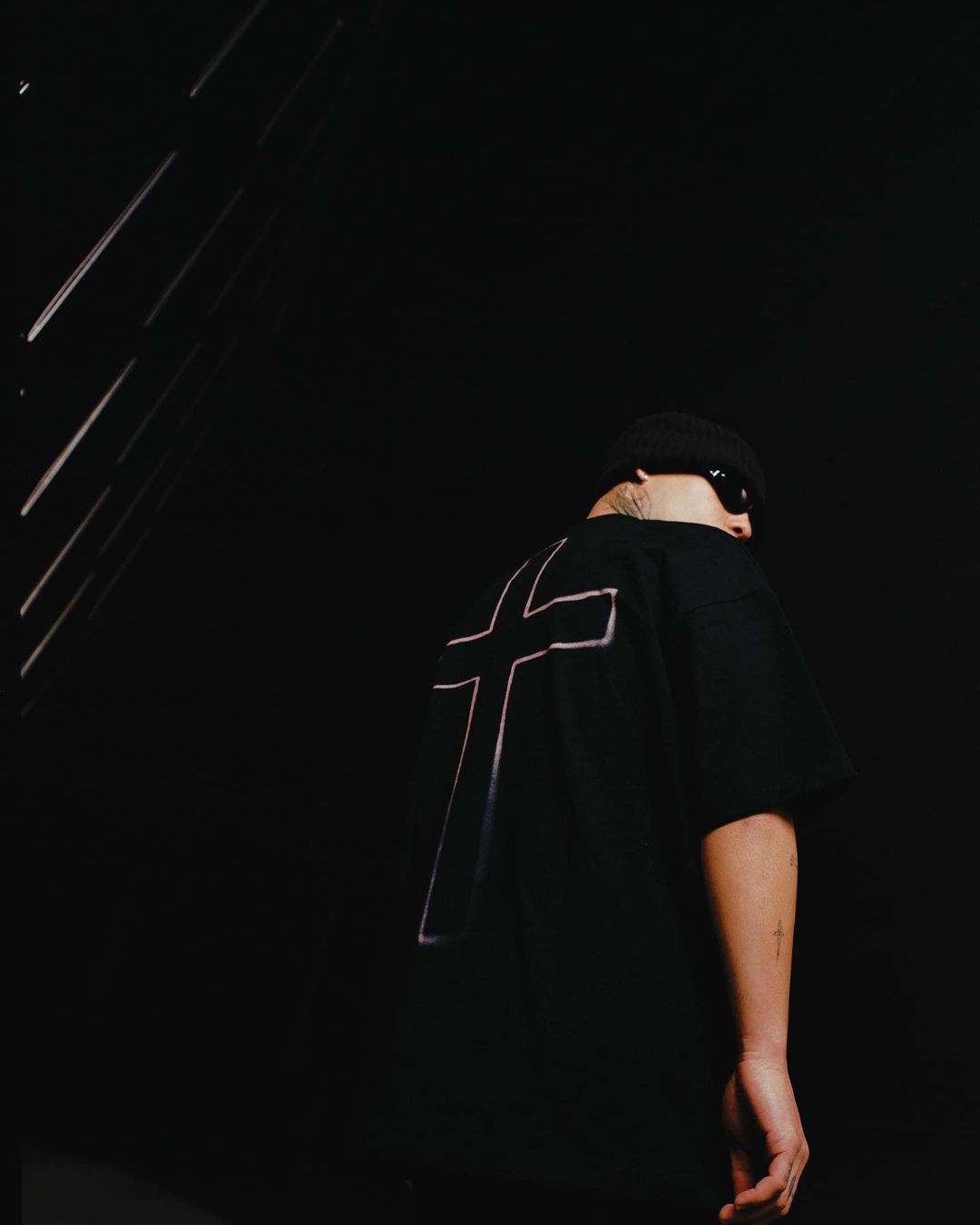 The five-piece collection includes black tees and hoodies adorned with thunderbolt and cross graphics, signature symbols of the STARBOY era.The collection also features two premium handmade jackets, one in leather and the other denim, with Seventh Heaven’s signature padded 3D cross on the back along with 3D thunderbolts. A cross-shaped shoulder bag rounds out the celebratory capsule.