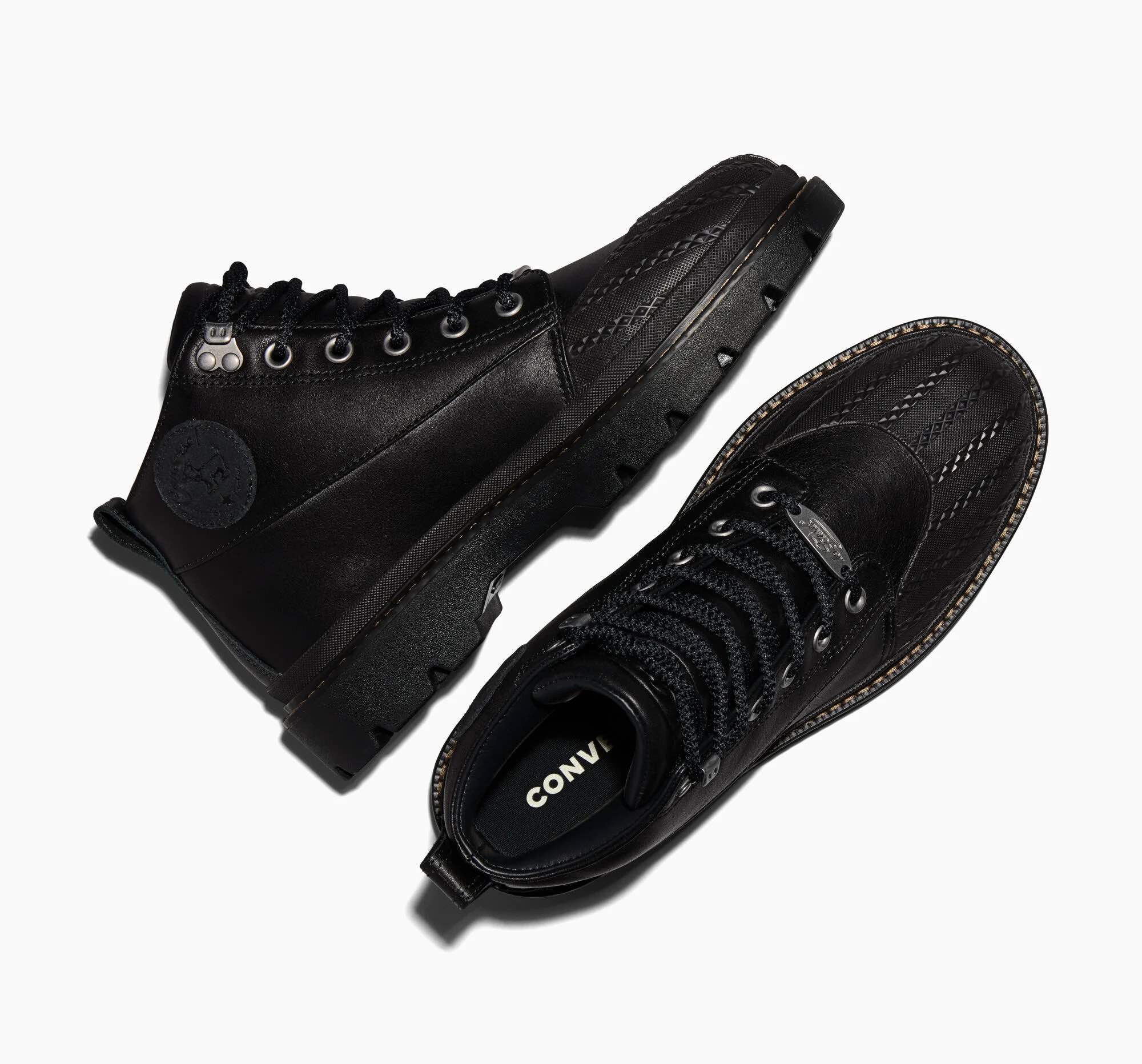 Rooted in Converse’s deep history, the 1908 Bronco Boot draws from the brand’s early 20th-century archive, when it produced rubber boots, waders, and outdoor footwear built for durability and protection. Its modern design also takes cues from the 1990s Mud Chunk — a sneaker-boot hybrid defined by a molded rubber vamp, split upper, and lugged outsole — all key elements reinterpreted in today’s silhouette.