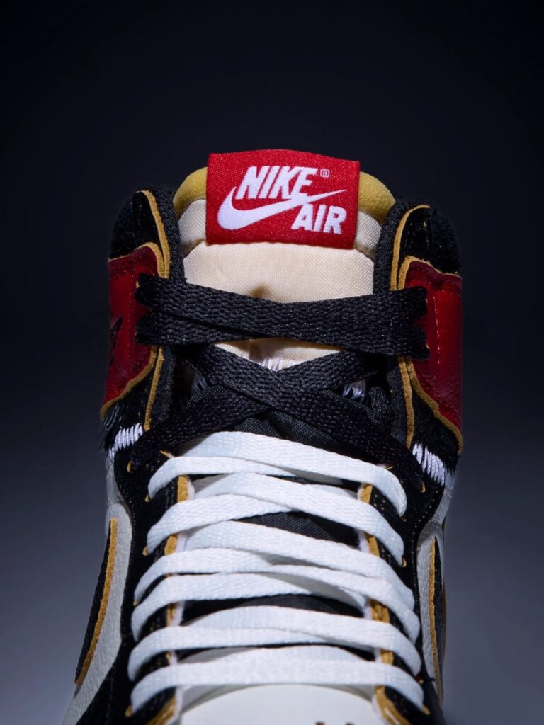 The Union LA x FRGMT x Air Jordan 1 High OG will feature the chopped-and-screwed design methodology of combining two different colorways together that was introduced on the first two Union Air Jordan 1 colorways in 2018. This time around, the design will pay homage to Hiroshi Fujiwara and Chris Gibbs’ shared love of the original 1985 “Black Toe” colorway of the Air Jordan 1. The bottom half of the shoe will feature the same “Royal Black Toe” color blocking as the 2014 fragment x Air Jordan 1, while the ankle collar will be black with a red overlay, the same as the OG “Black Toe.”