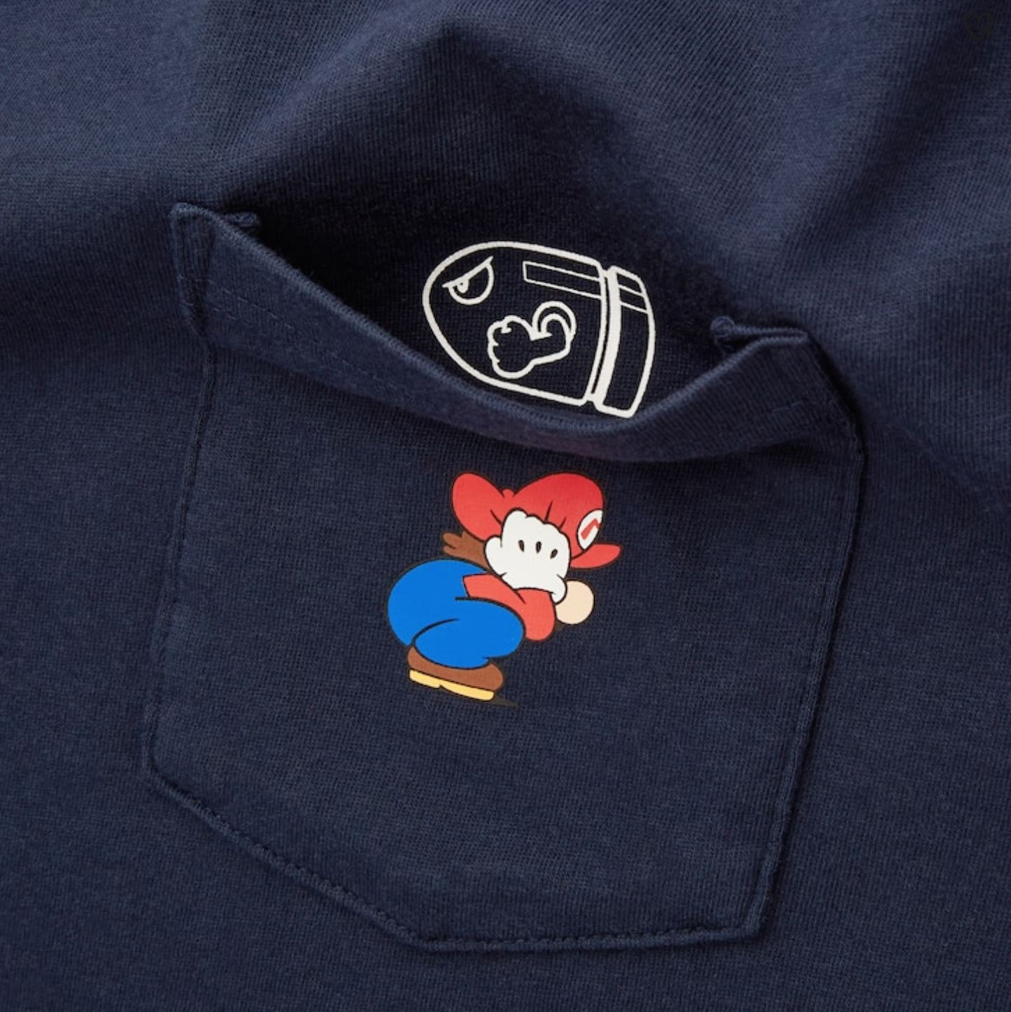 The capsule of 14 shirts (8 adult, 6 youth versions) cashes in on the nostalgia with graphics from all eras of the game, starting with the OG 8-bit ones from 1985. Notable designs include a white tee with a timeline of Mario’s evolution over the last 35 years. There is also a navy pocket tee with a small ducking Mario and a Bullet Bill hidden inside the pocket. “Warp Zone,” “Mushroom Kingdom,” and an “85-20” graphics also make appearances on a range of colored tees.