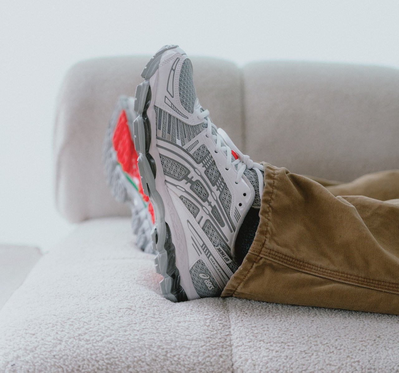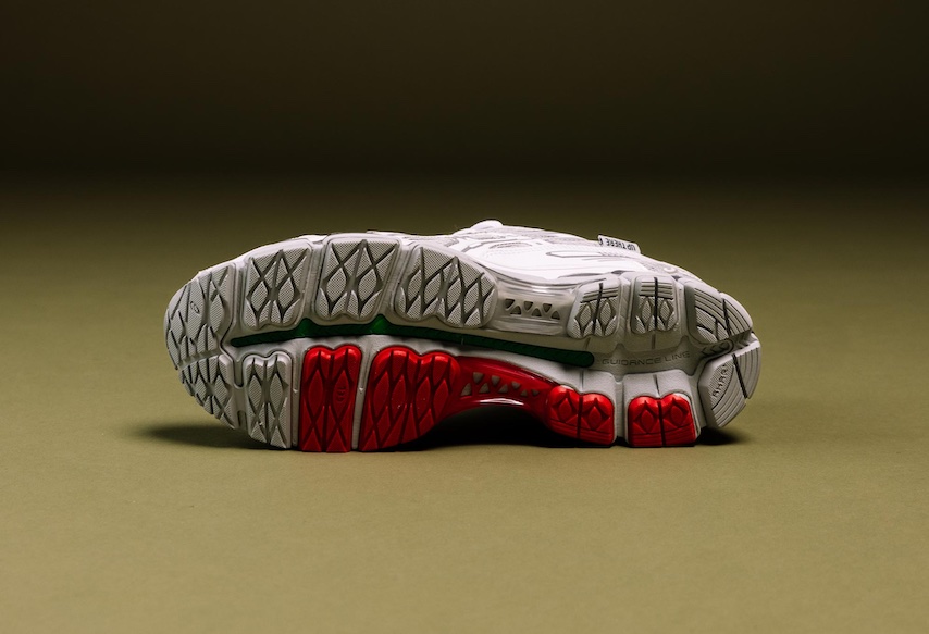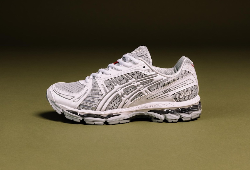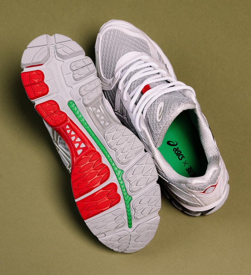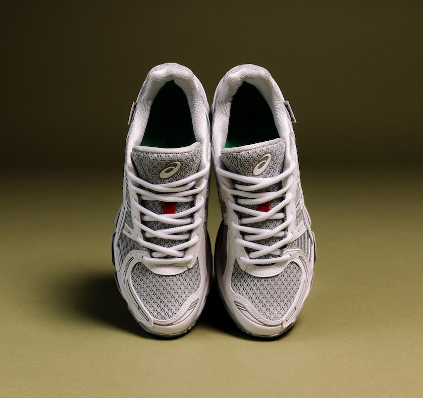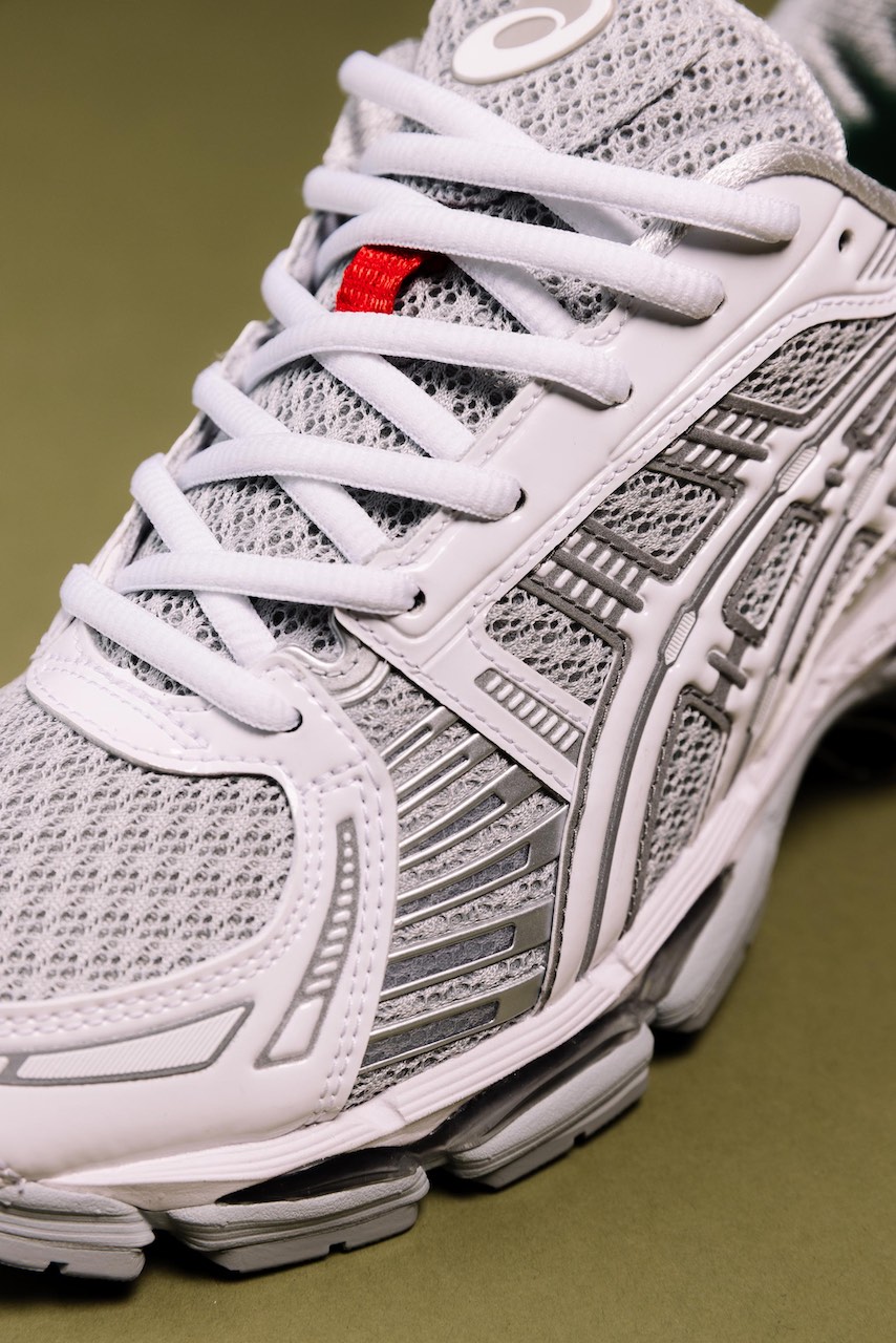 This sequel arrives in a crisp white palette, retaining the same glossy patent leather panels and red accents from the first drop—details that give the silhouette a refined look reminiscent of Prada’s America’s Cup sneaker. The mesh pattern across the upper nods to the GEL-KAYANO 20, a cult favorite among Australian runners. Underfoot, Up There’s signature green takes over the guidance line, while Signal Red rubber divides the instep for a pop of contrast. Each pair comes with two lace options and custom packaging.