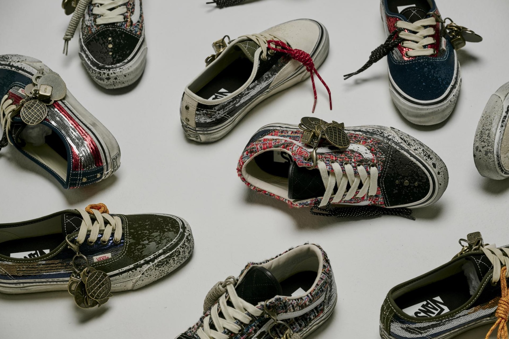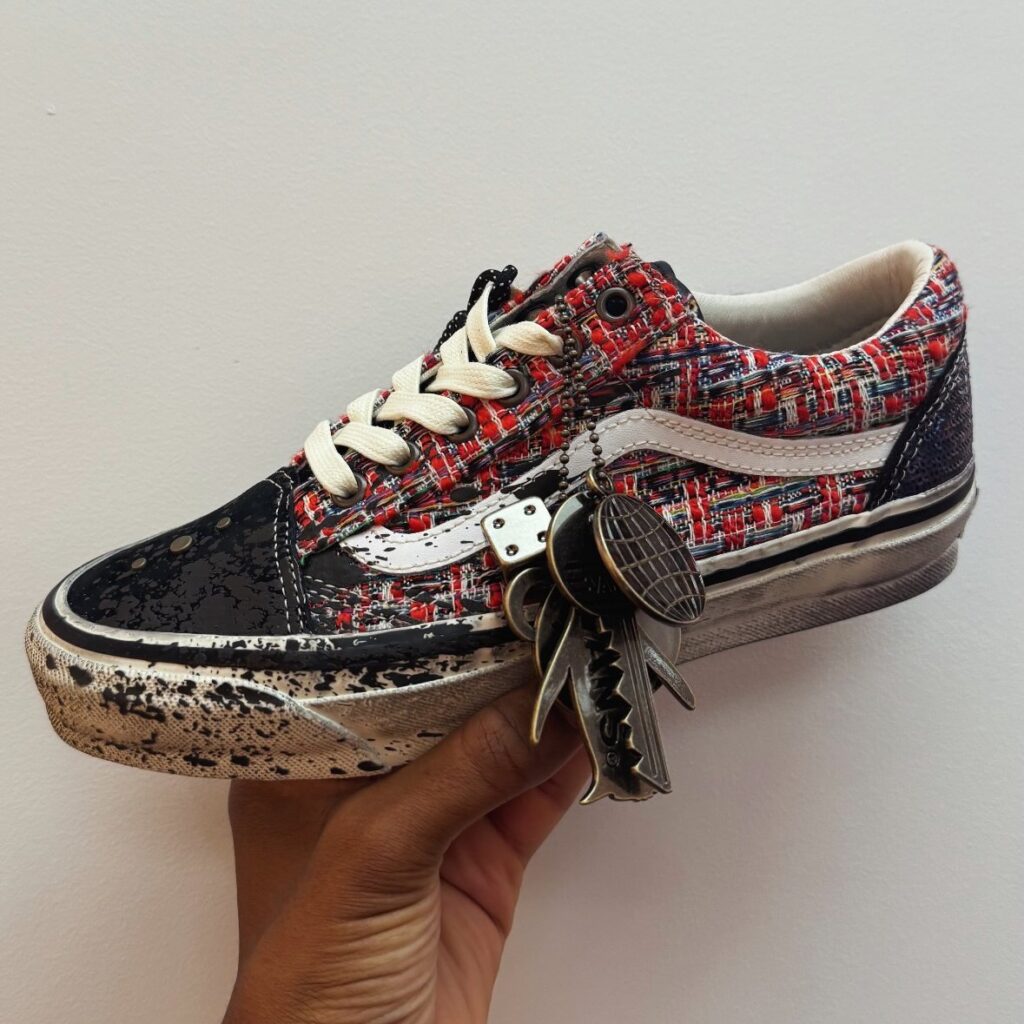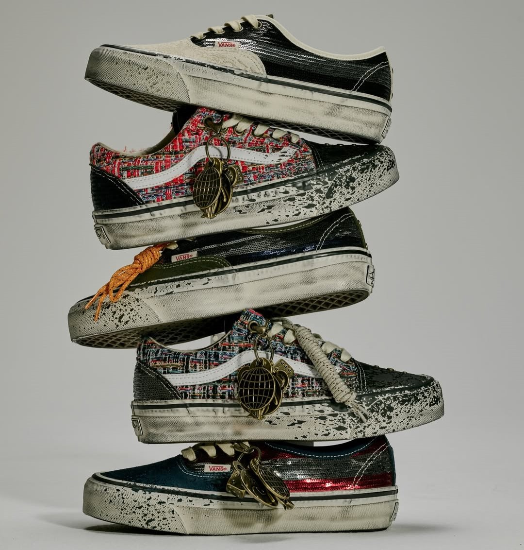 Joining the Authentic is two colorways of the LX Old Skool Charms, which rework the familiar silhouette using textured multi-colored tweed blends and sequin patches. The material mix references some of Chanel’s other luxury bag offerings, positioning the Old Skool as an accessory-forward reinterpretation rather than a traditional skate shoe.