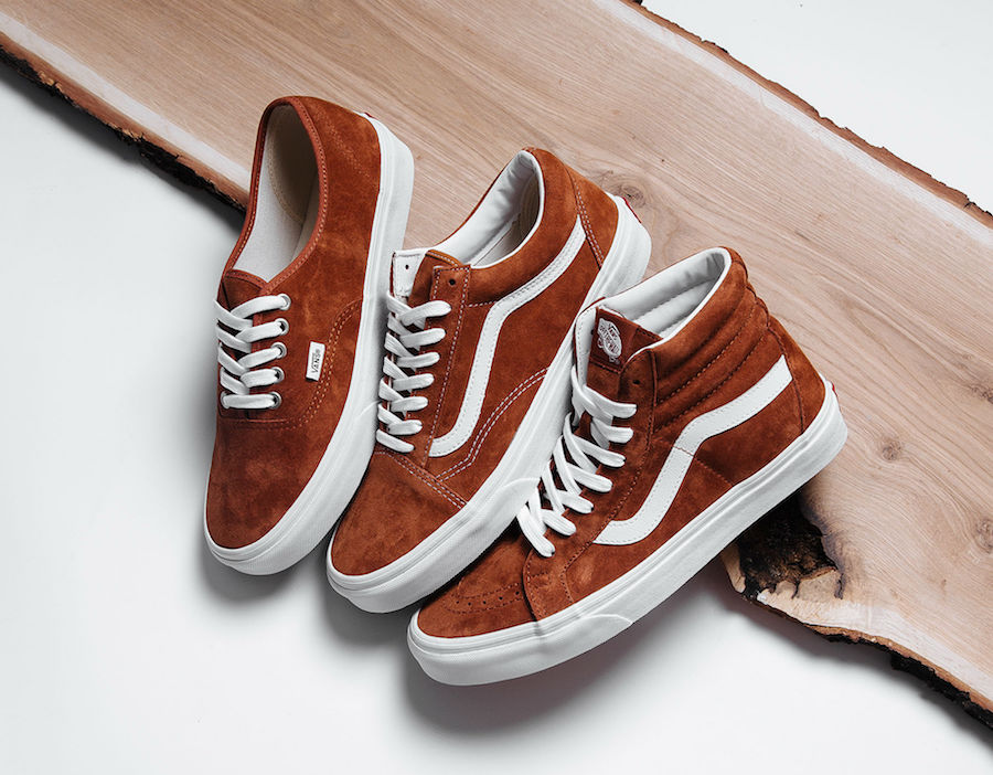 Vans prepares us for the autumn weather ahead with three new iterations of their classic silhouettes in a Brown pig suede leather construct.