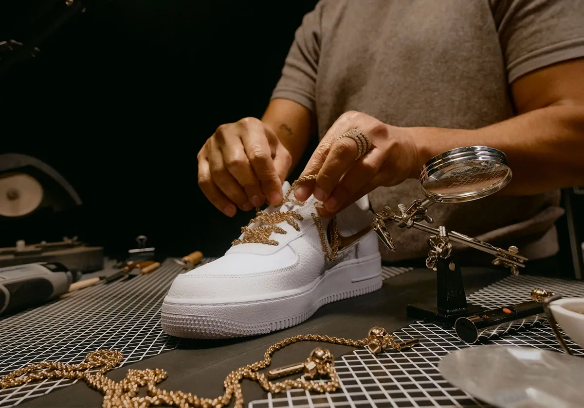 Victor Solomon and Nike come together for NBA All-Star Weekend 2026 to unveil their collaborative Trophies collection. The offering reimagines the Air Foamposite One, Air Force 1, and Air Max 90 in a refined white, gold, and black palette, celebrating Solomon’s long-standing dialogue between basketball, sculpture, and luxury craft while honoring the cultural landmarks that have shaped his journey through Los Angeles.