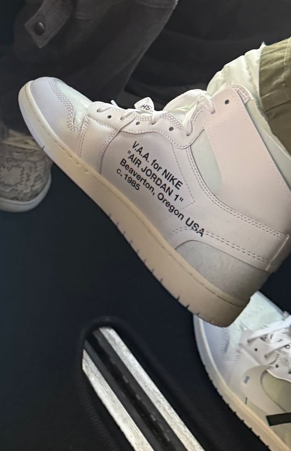 Update (10/04/25): Hiroshi Fujiwara has debuted what appears to be the upcoming “Alaska” Air Jordan 1. The FRGMT founder pulled up to “Virgil Abloh: The Codes” exhibition in Paris in a new version of the Off-White x Air Jordan 1 “Euro” featuring “V.A.A. for NIKE” branding on the side panels. All Off-White branding has been removed, similar to the “Sesame” Air Force 1s, indicating that this release will not be an official collaboration with Off-White but instead with Virgil Abloh Archive and the late designer’s estate. Originally expected to drop Holiday 2025, look for V.A.A. x Air Jordan 1 “Alaska” to drop early 2026.