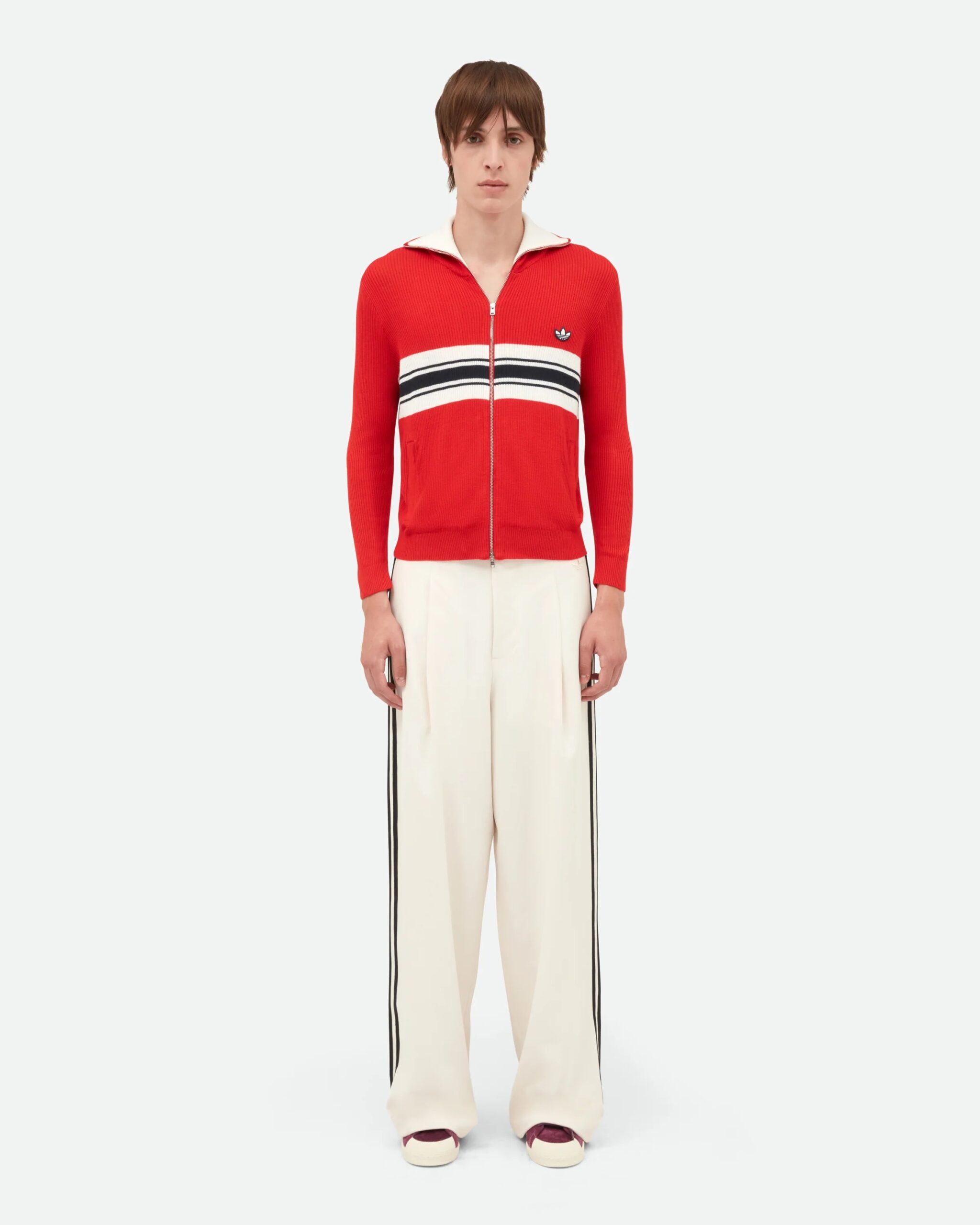 Apparel offerings include quilted jackets, a leopard print knit vest, wool and velour tracksuits, and soccer jerseys, complemented by leather bowling bags that reinterpret adidas’ timeless design language.