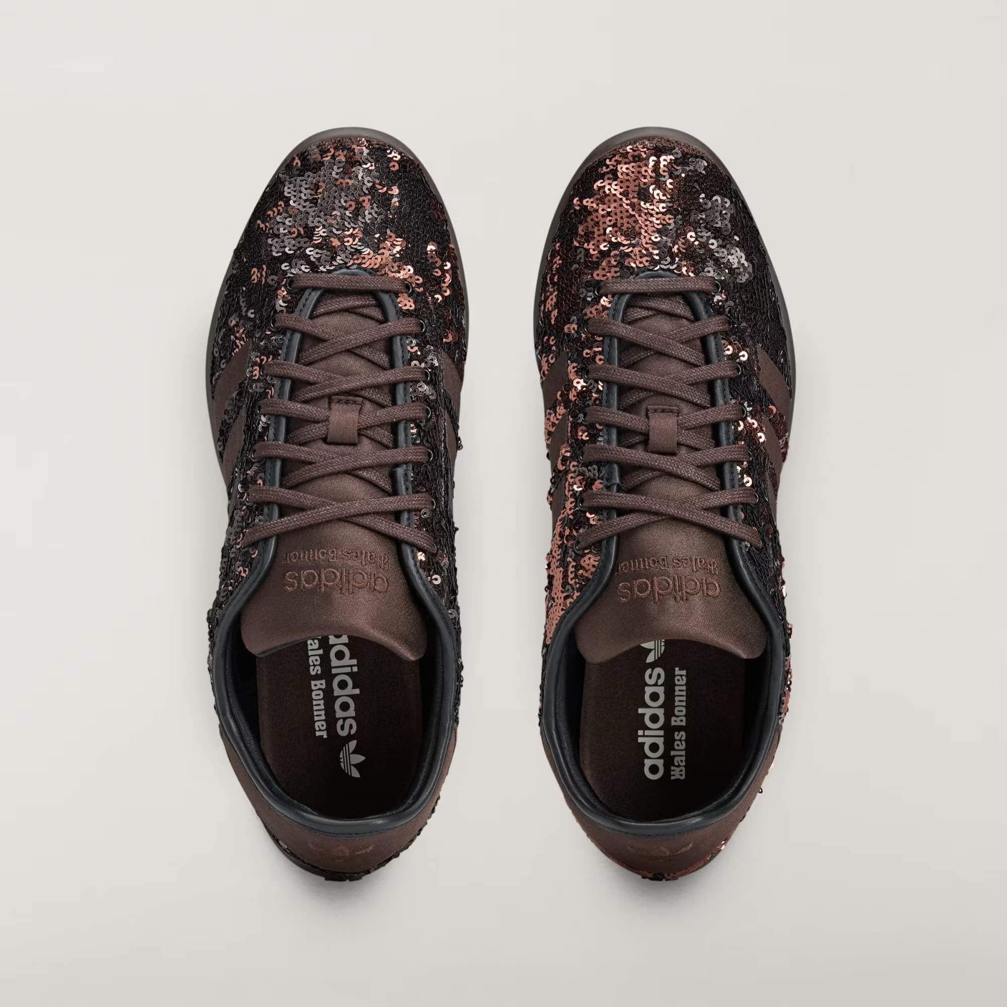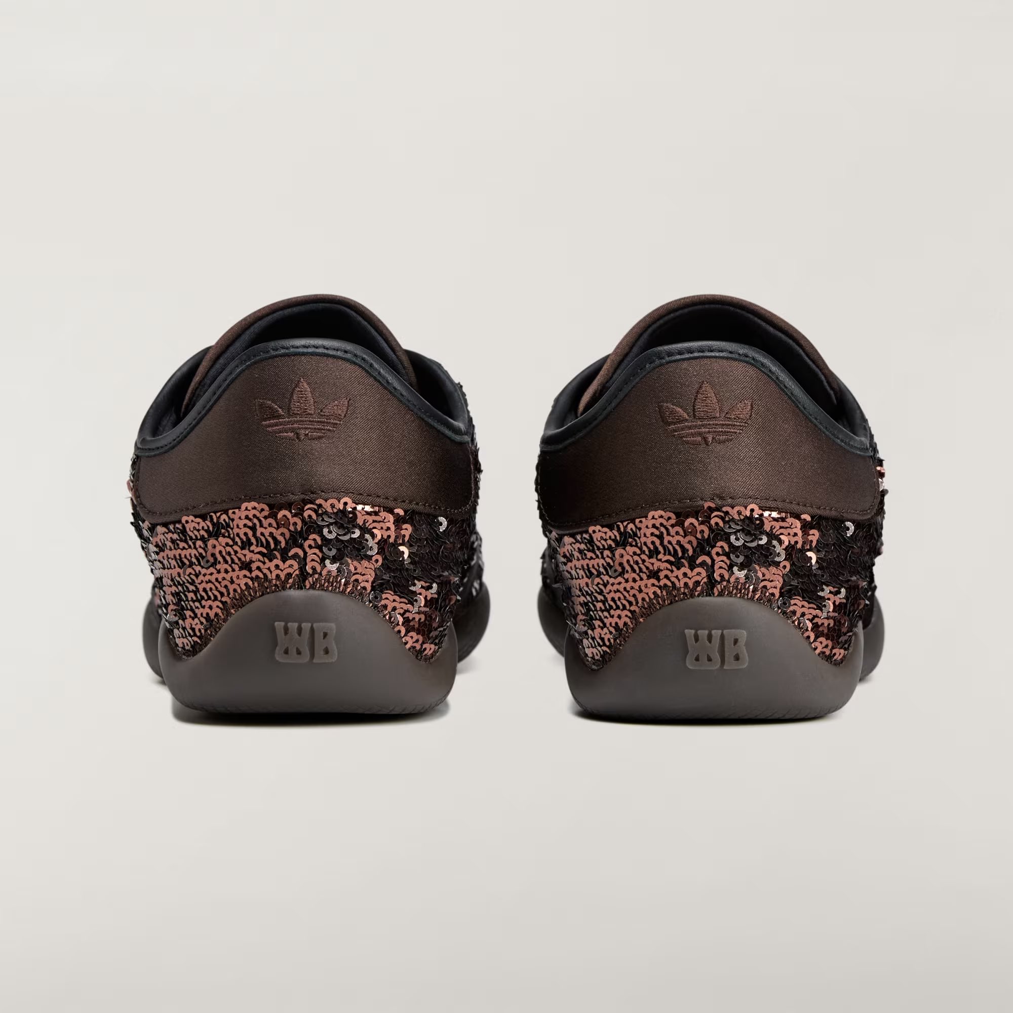 The Karintha Lo, introduced earlier this year, returns in three iterations: two satin colorways in black and blue and a sequined version in brown. A variety of reimagined Trefoil classics join the lineup – including the Japan in a calming lavender tone, the Superstar in croc-embossed leather, and an Adilette Slide with an upper hand-woven in Brazil and tire-inspired outsole, paying homage to the resourcefulness of communities across Africa that have long repurposed worn tires into durable footwear.