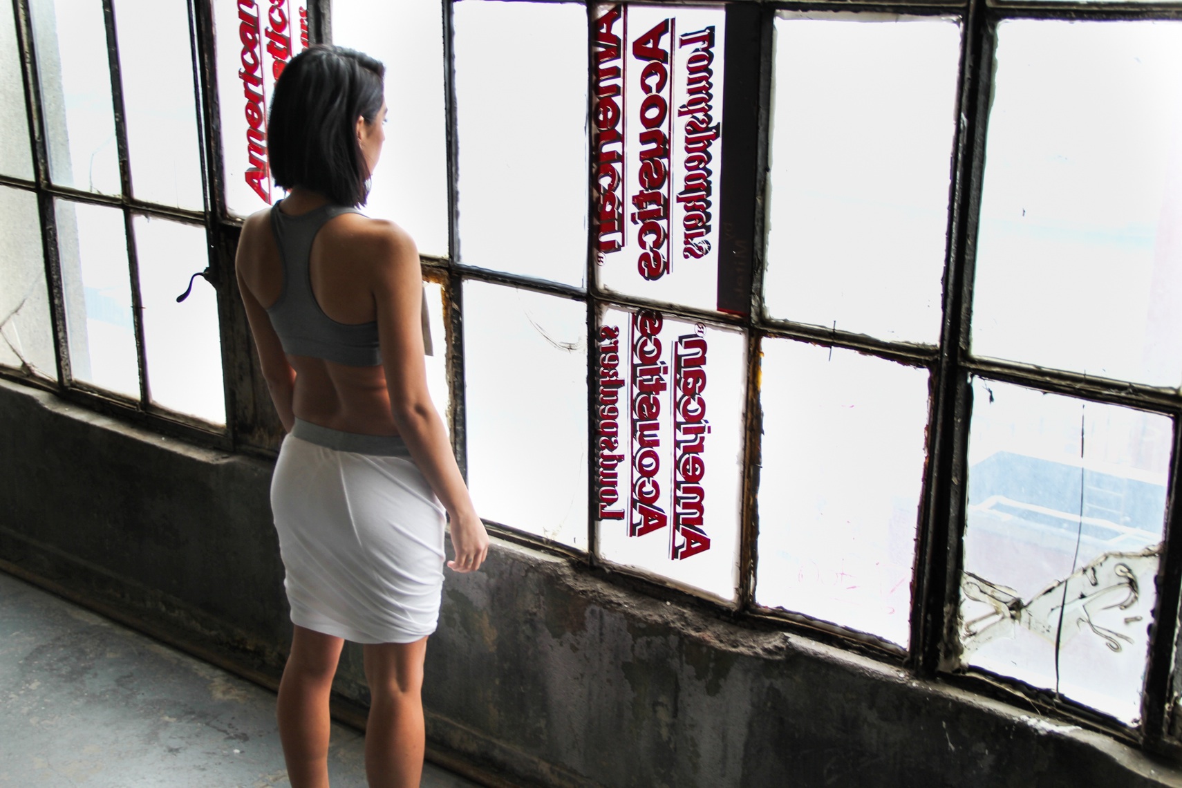 Saturday: Nike Pro sports bra, T by Alexander Wang ruched mesh white skirt