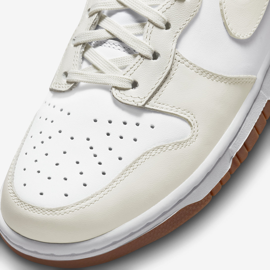 This Dunk High features a clean, neutral color scheme. White leather uppers are paired with Sail overlays for a vintage-inspired look, while underfoot is a white midsole and classic gum rubber outsole.