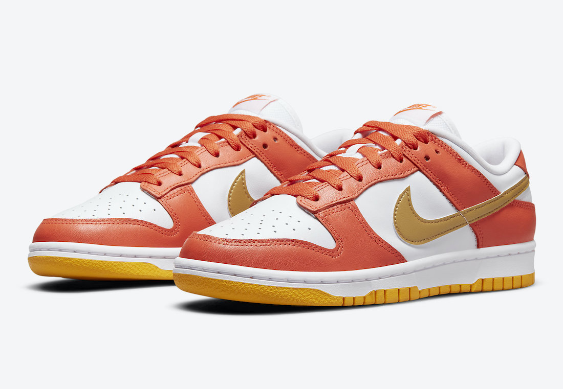The WMNS Nike Dunk Low and High “University Gold” launch on November 27th on SNKRS and at select retailers. Check out official images of both pairs down below.