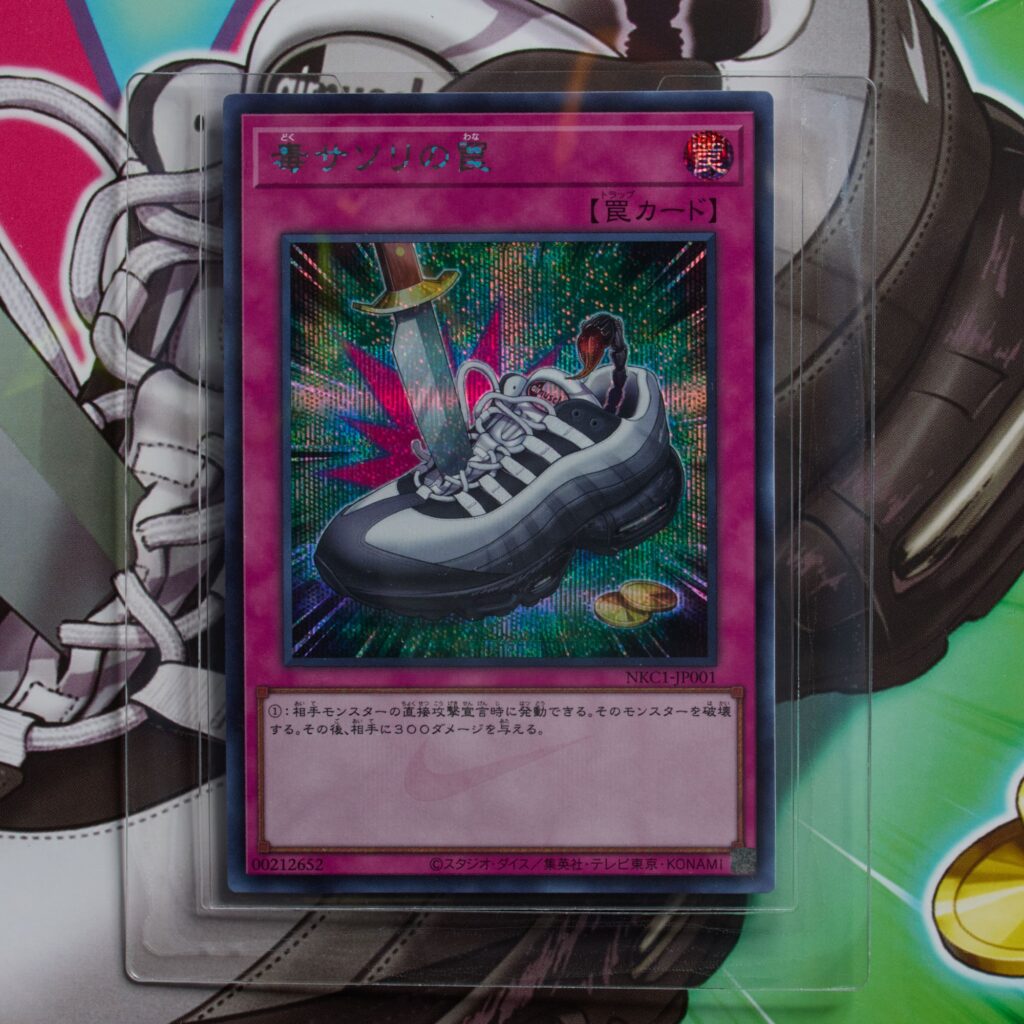 Update (08/31/25): In addition to the Magic and Trap cards that come with the shoes, .SWOOSH and Konami also collaborated on a promo Red-Eyes Black Dragon card, available exclusively at the 2025 Yu-Gi-Oh! World Championship in Paris and the Yu-Gi-Oh! x Nike “House of Duel” pop-up in Tokyo. Check it out below.