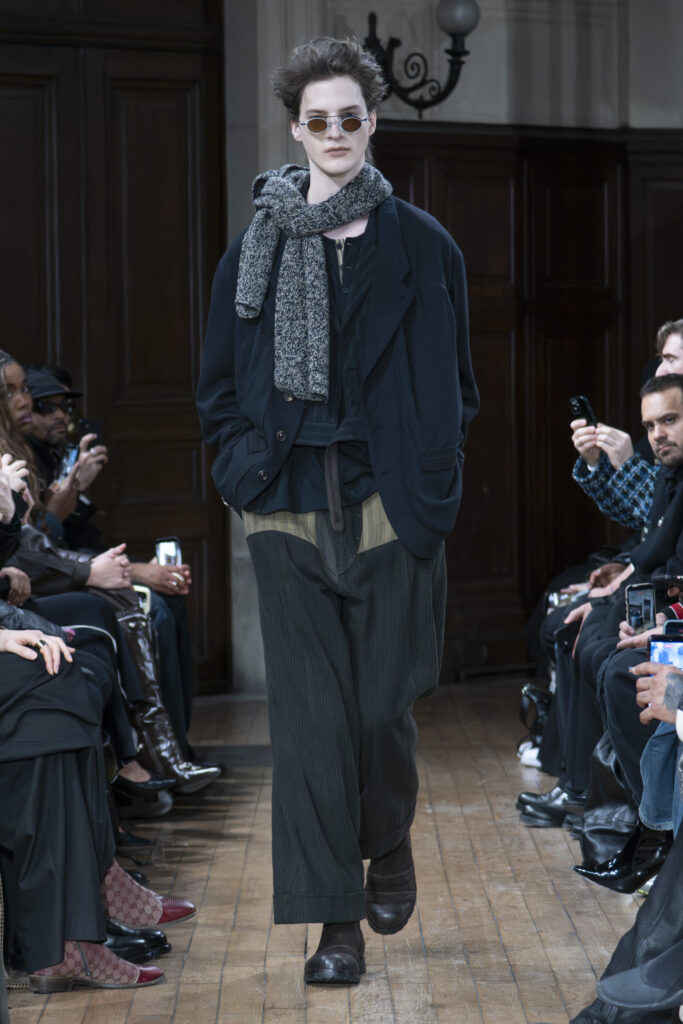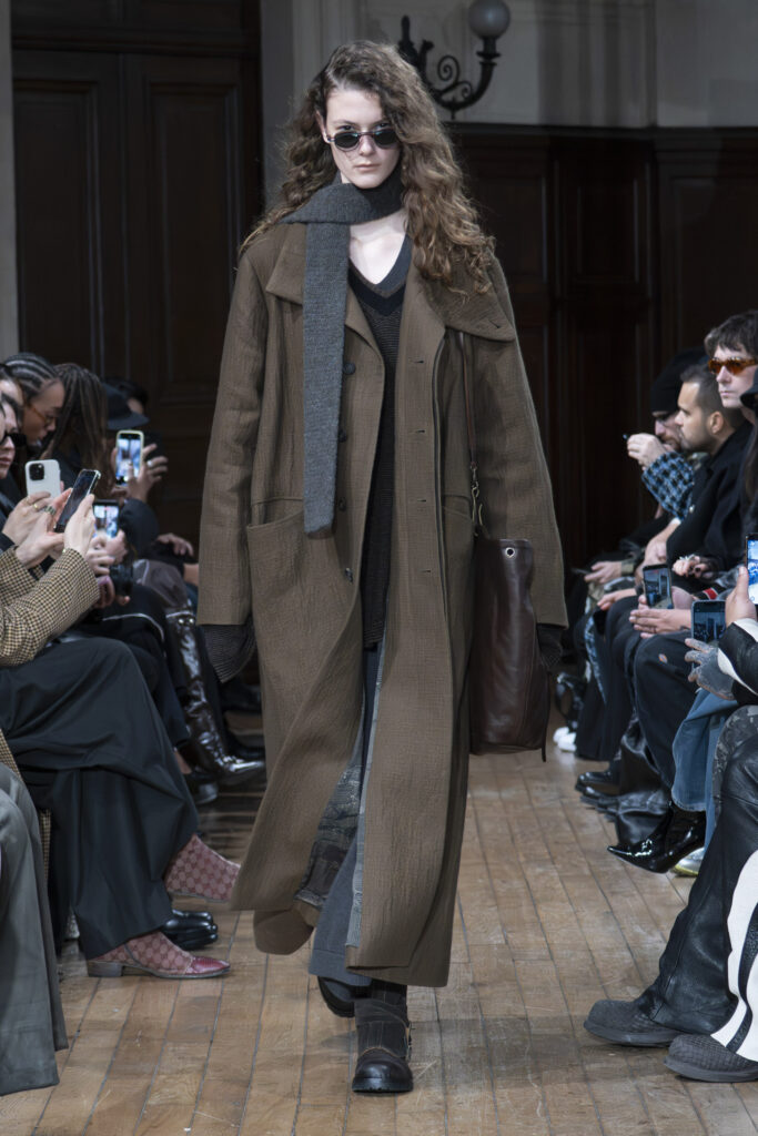 Accessories followed the same restrained logic. Scarves were loosely layered around the neck, footwear appeared heavy and utilitarian, and subtle leather and metal elements prioritized function over ornament.