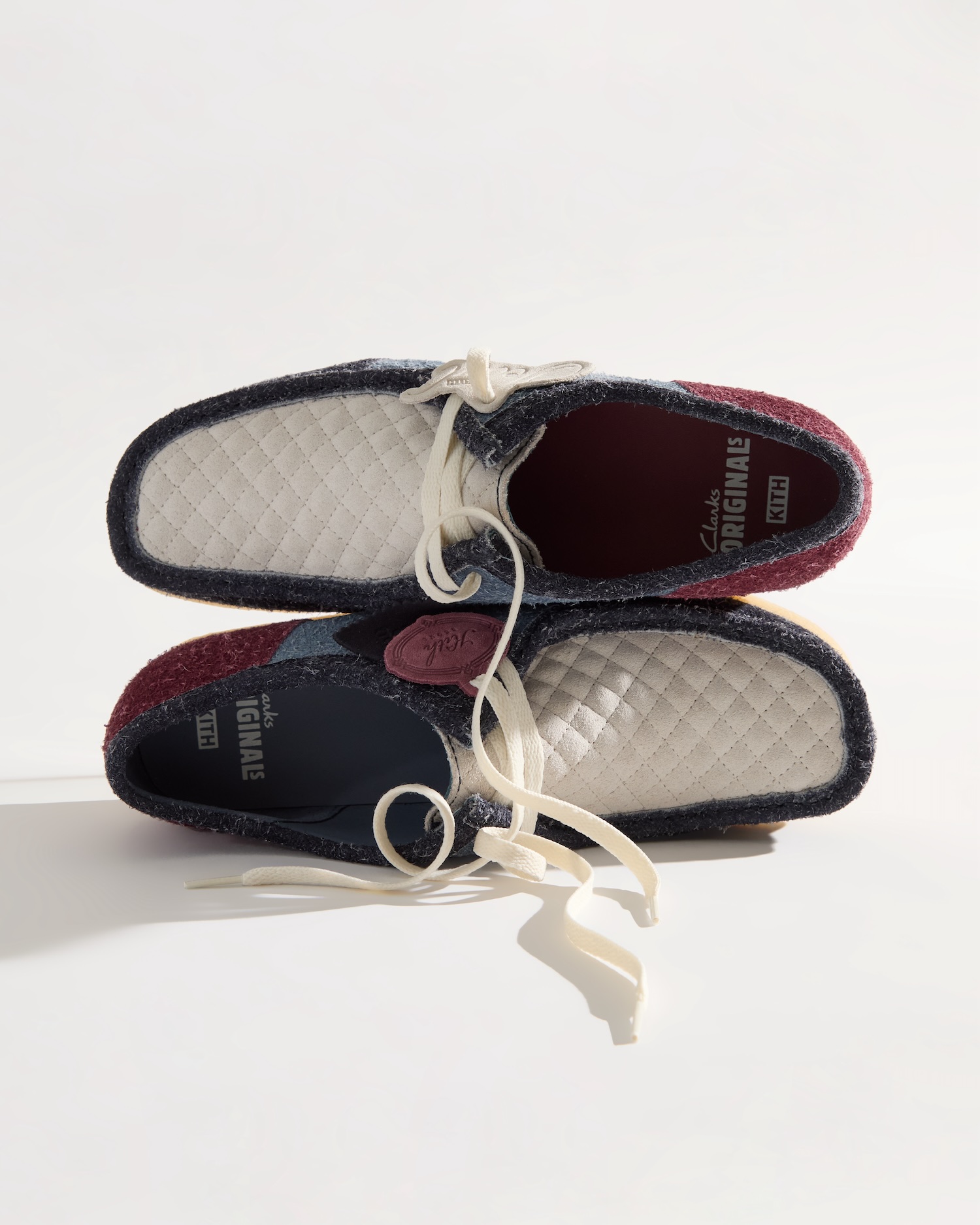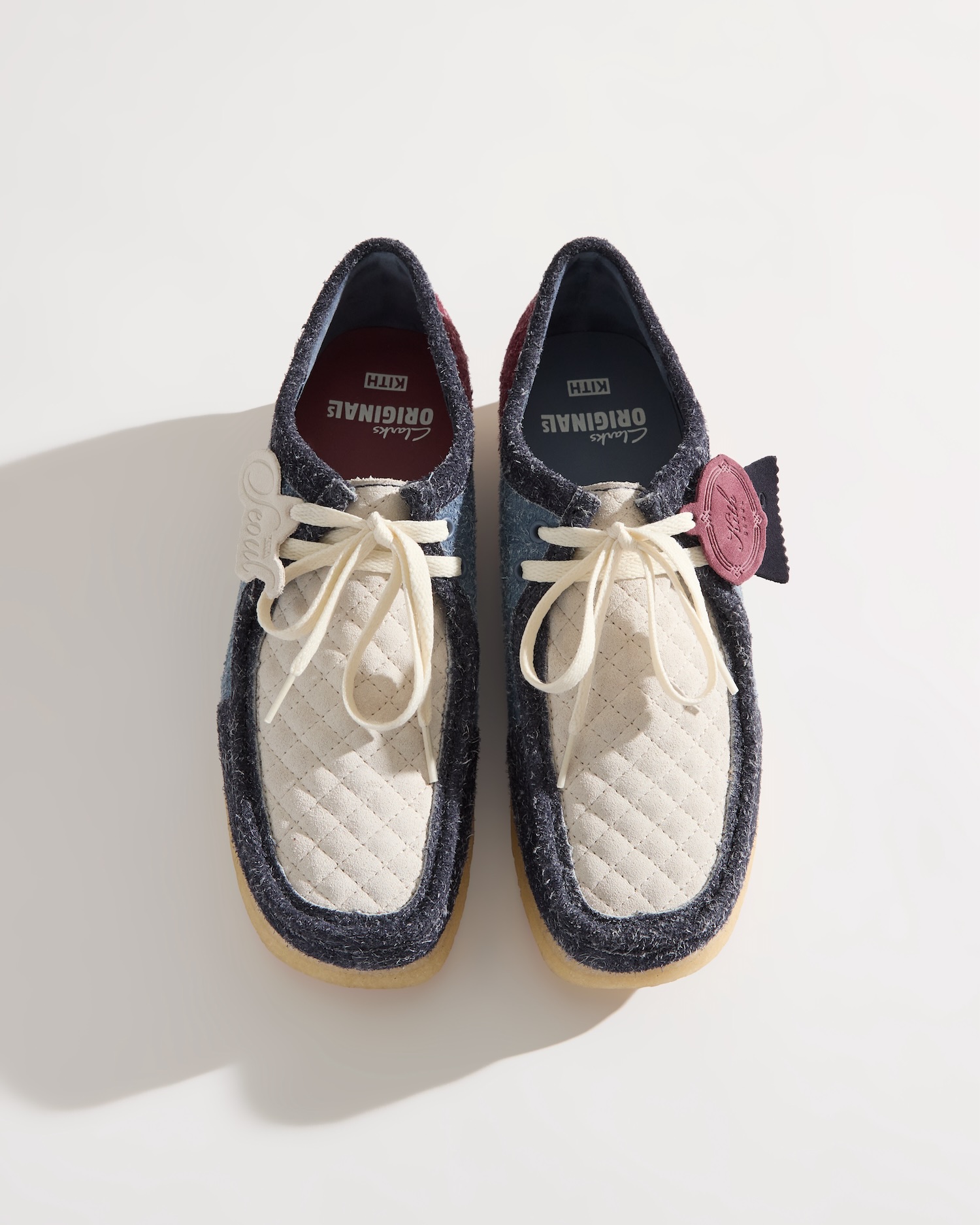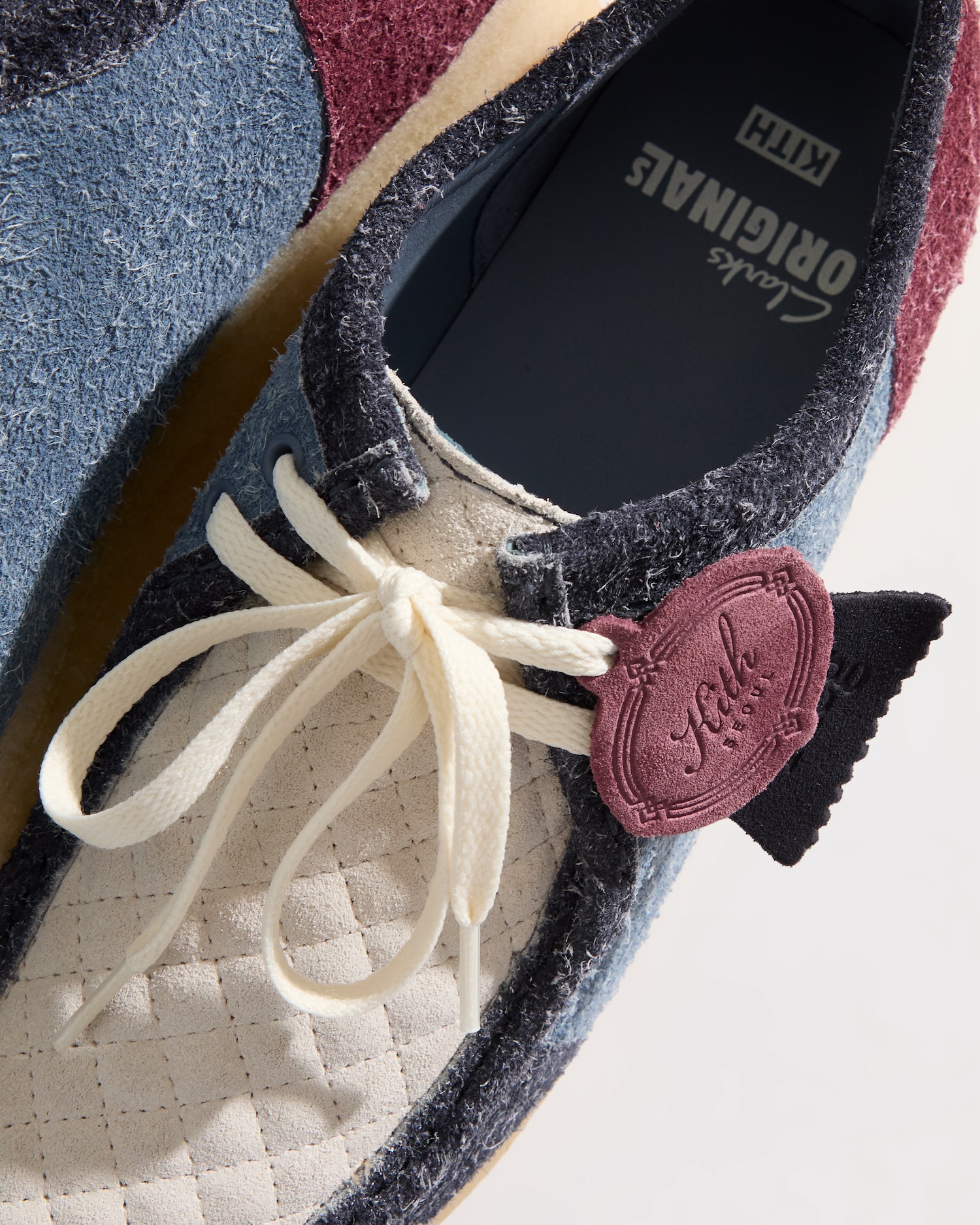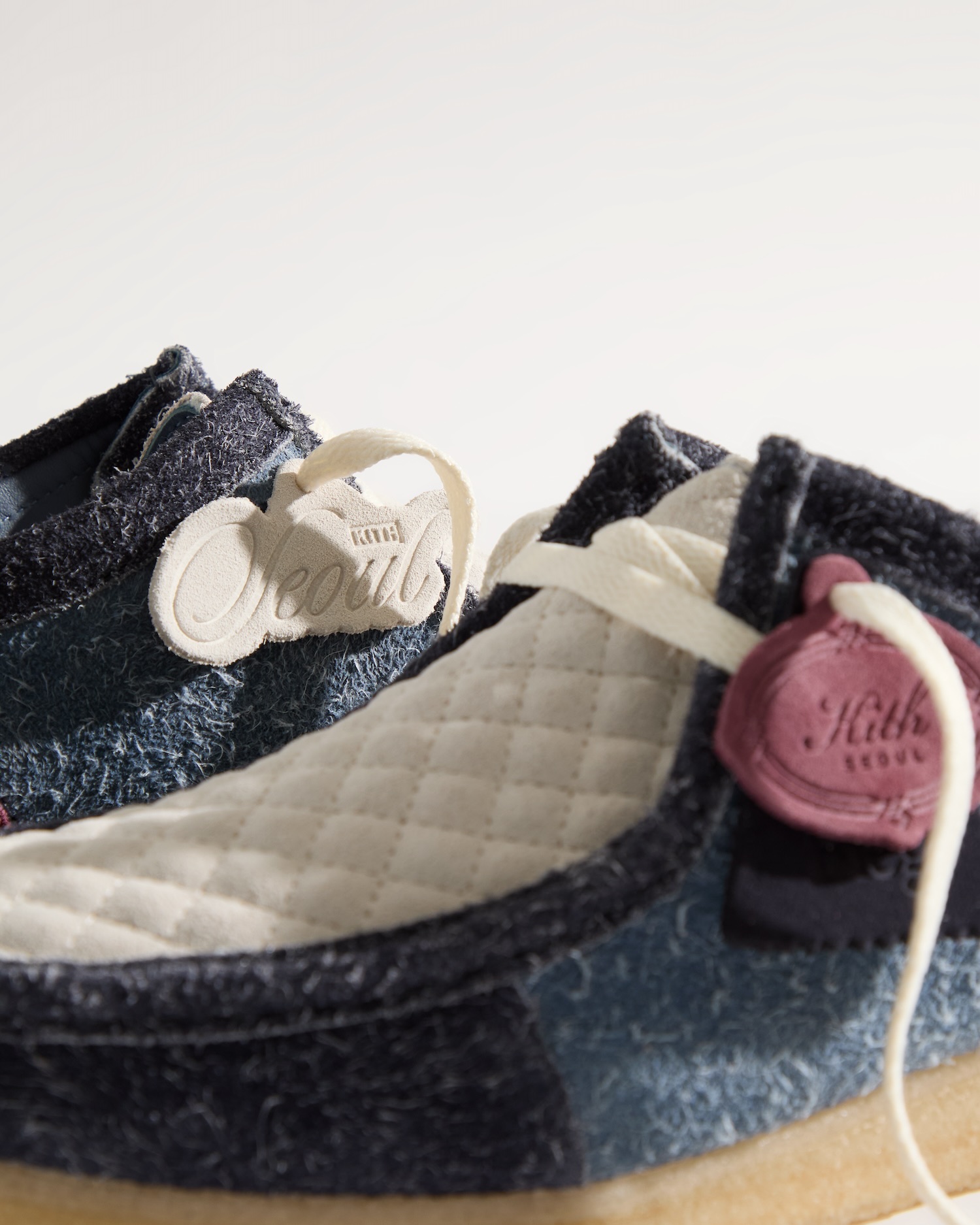 The opening of Kith Seoul is accompanied by the release of an exclusive capsule of apparel, accessories, and footwear available exclusively at the new store. Highlighting the capsule is the “Seoul” Clarks Wallabee designed by Kith founder Ronnie Fieg, featuring hairy suede and quilted suede colorblocked construction with colors inspired by the South Korean flag. Similar design cues are found on Kith’s “Seoul” GEL-LYTE III that will be available globally.