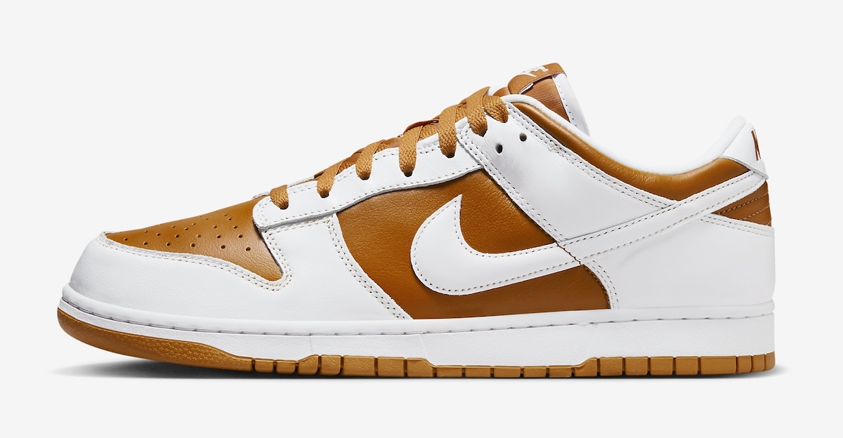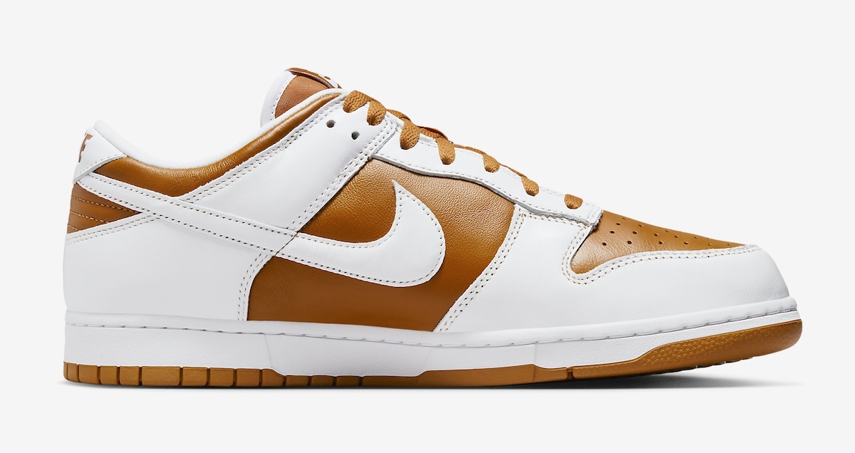 The CO.JP releases from the late ’90s and early ’00s are some of the most sought-after amongst collectors as they were released exclusively in Japan over twenty years ago, making them difficult to track down. The “Reverse Curry” specifically first released in 1999 and features a Dark Curry leather base paired with white leather overlays. The shoe is nicknamed “Reverse Curry” as the color blocking on these is the reverse of the OG “Be True To Your School” Dunks, which featured white on the base.