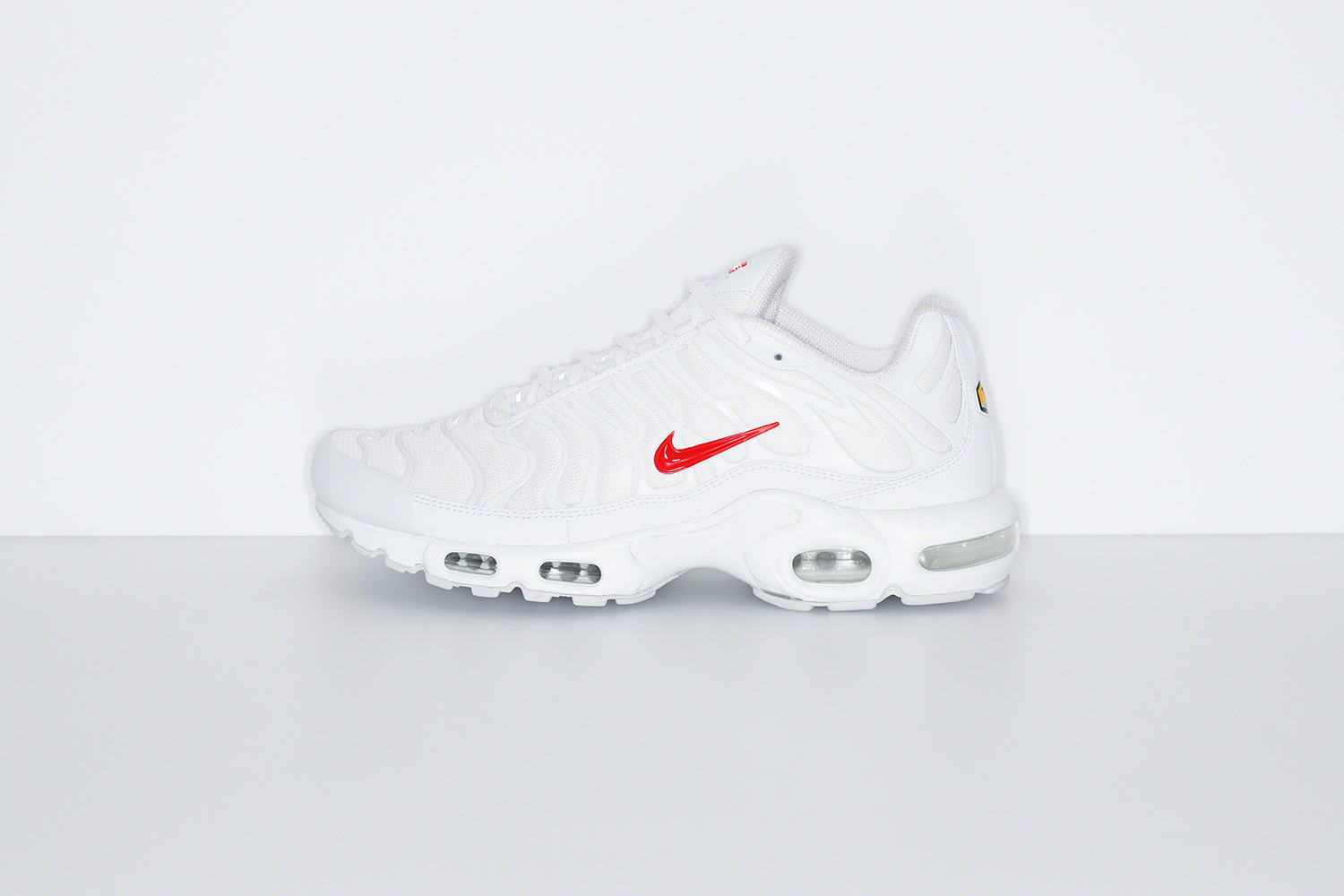 Update (10/12/20): Supreme has officially revealed its upcoming Air Max Plus collaboration with Nike. Along with the previously previewed University Red colorway, there is also a green and a white colorway, as well as a set of matching running hats in three colorways.